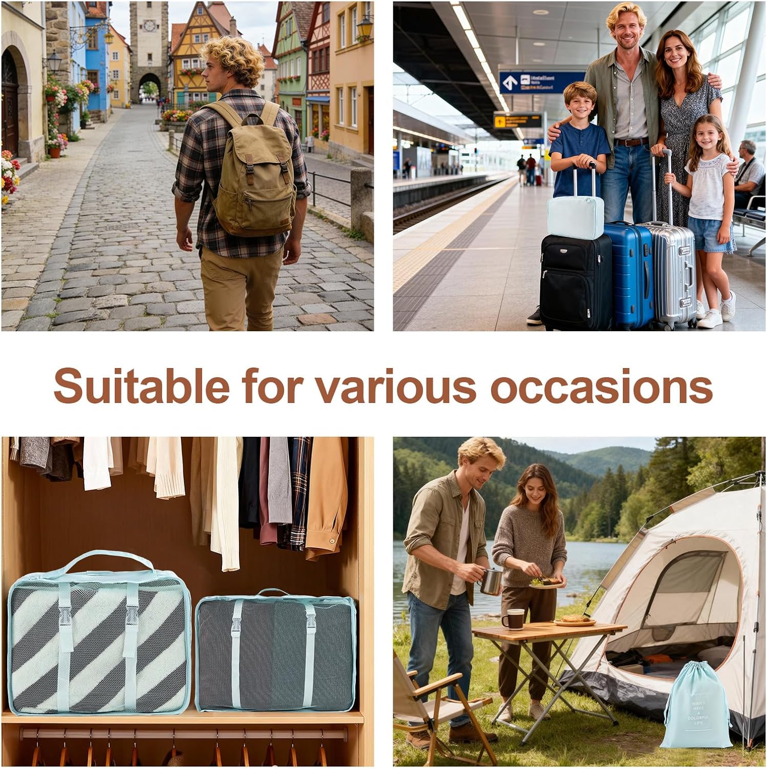 Effortless Travel Organization:These luggage cubes for packing are designed to save you time and effort by keeping your clothes and accessories neatly organized and easily accessible. Enjoy the convenience of quick, hassle-free packing while maximizing comfort during your travels.