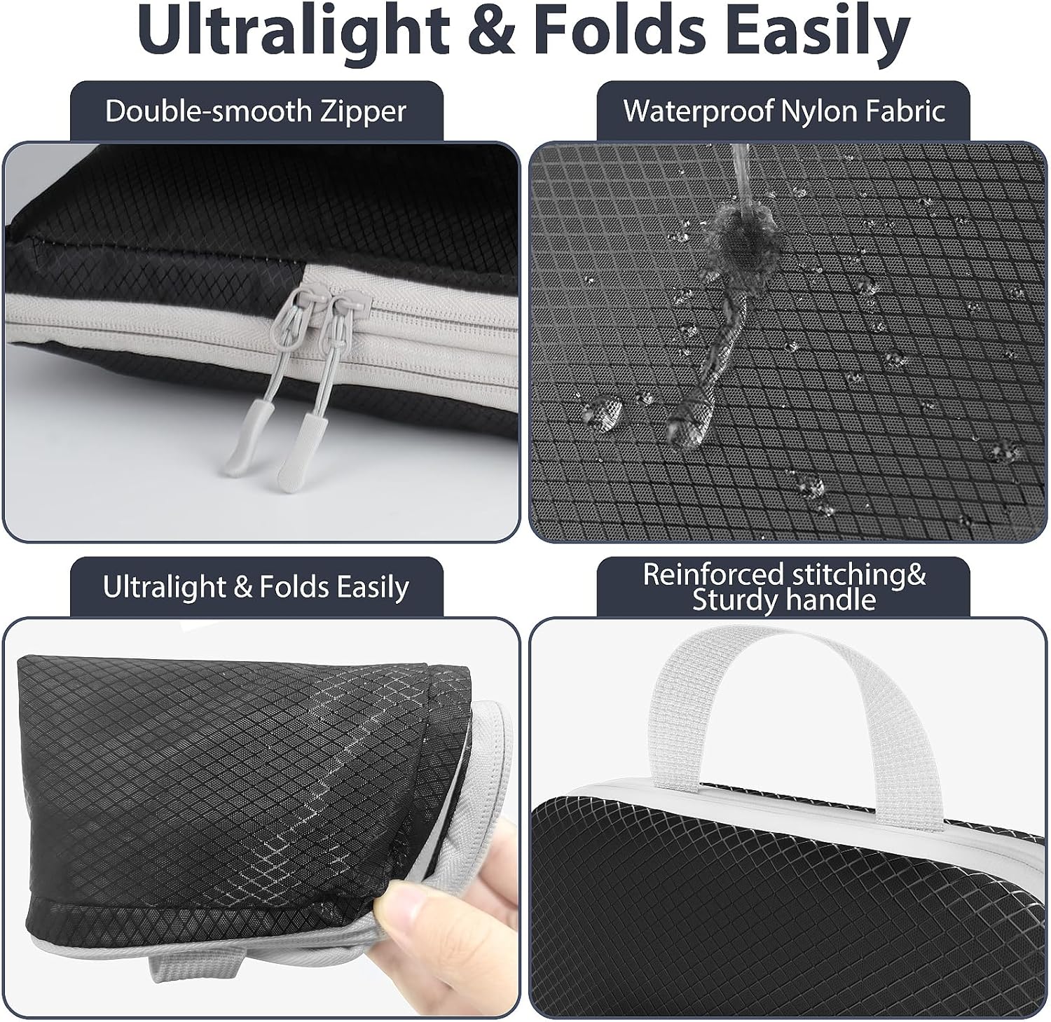 【Two-Way Zippers and Waterproof Quality】: Smooth dual-way zippers with extended pulls ensure durability and ease of use. compression packing cubes for suitcases are crafted from premium 420D waterproof and tear-resistant diamond-grid nylon fabric, safeguarding your clothes from wrinkles and stains. Reinforced handles and zipper stitching prevent unexpected issues during your journey.
