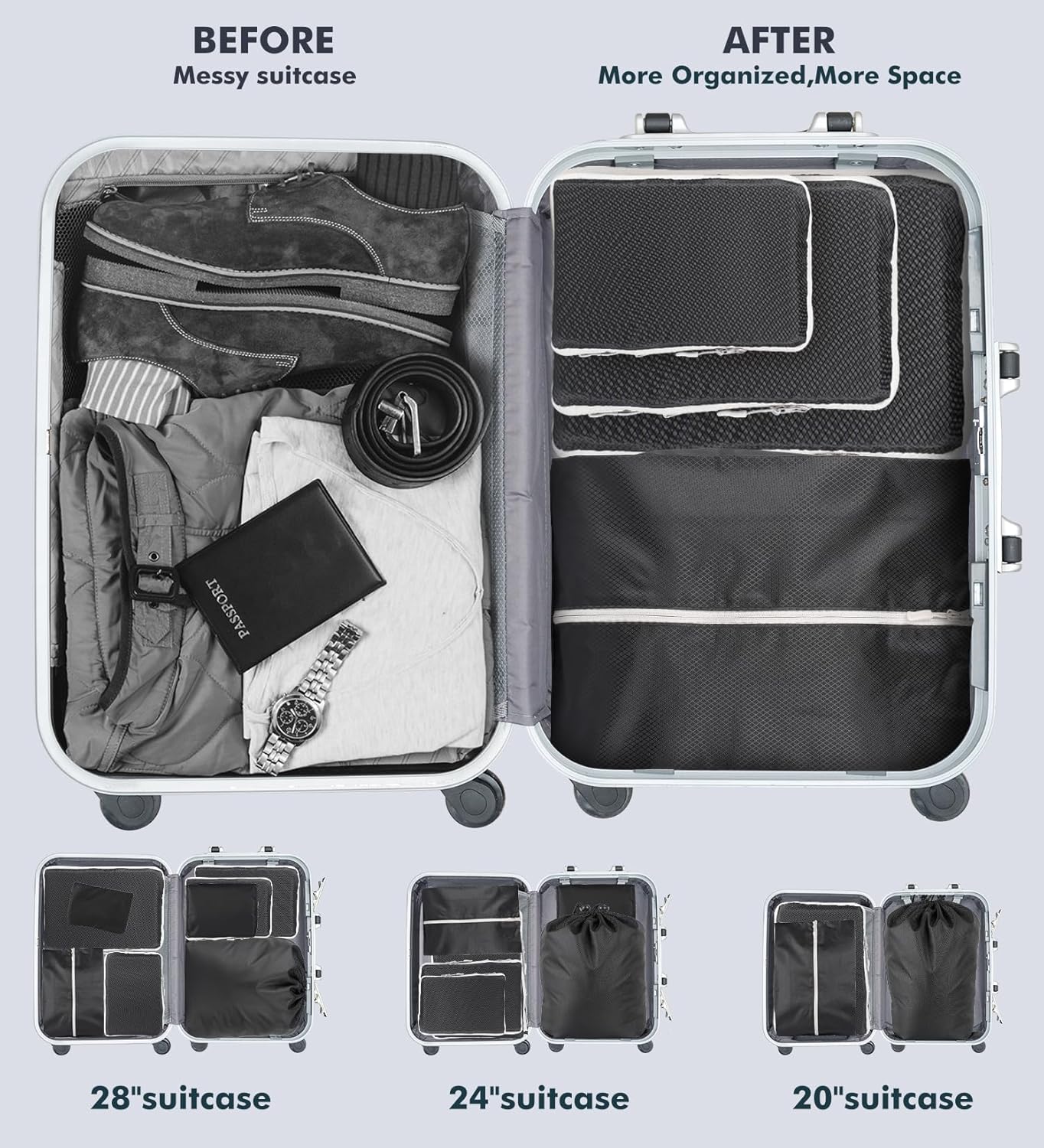 8 Set Compression Packing Cubes Travel, Ultralight Expandable 60% Space Saving Packing Cubes for Travel Compression,Packing Compression Organizing Accessories for Women/Men (Black)