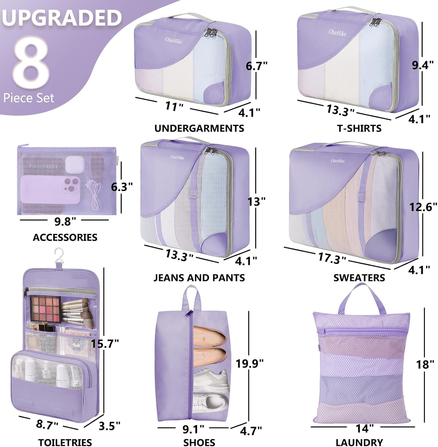 8 Set Packing Cubes for Travel, Gifts for Women Mom,Anti-Tearing Suitcase Organizer for Luggage with Shoe & Hanging Toiletry Bag,OlarHike Vacation Essentials & Accessories for Cruise Ship