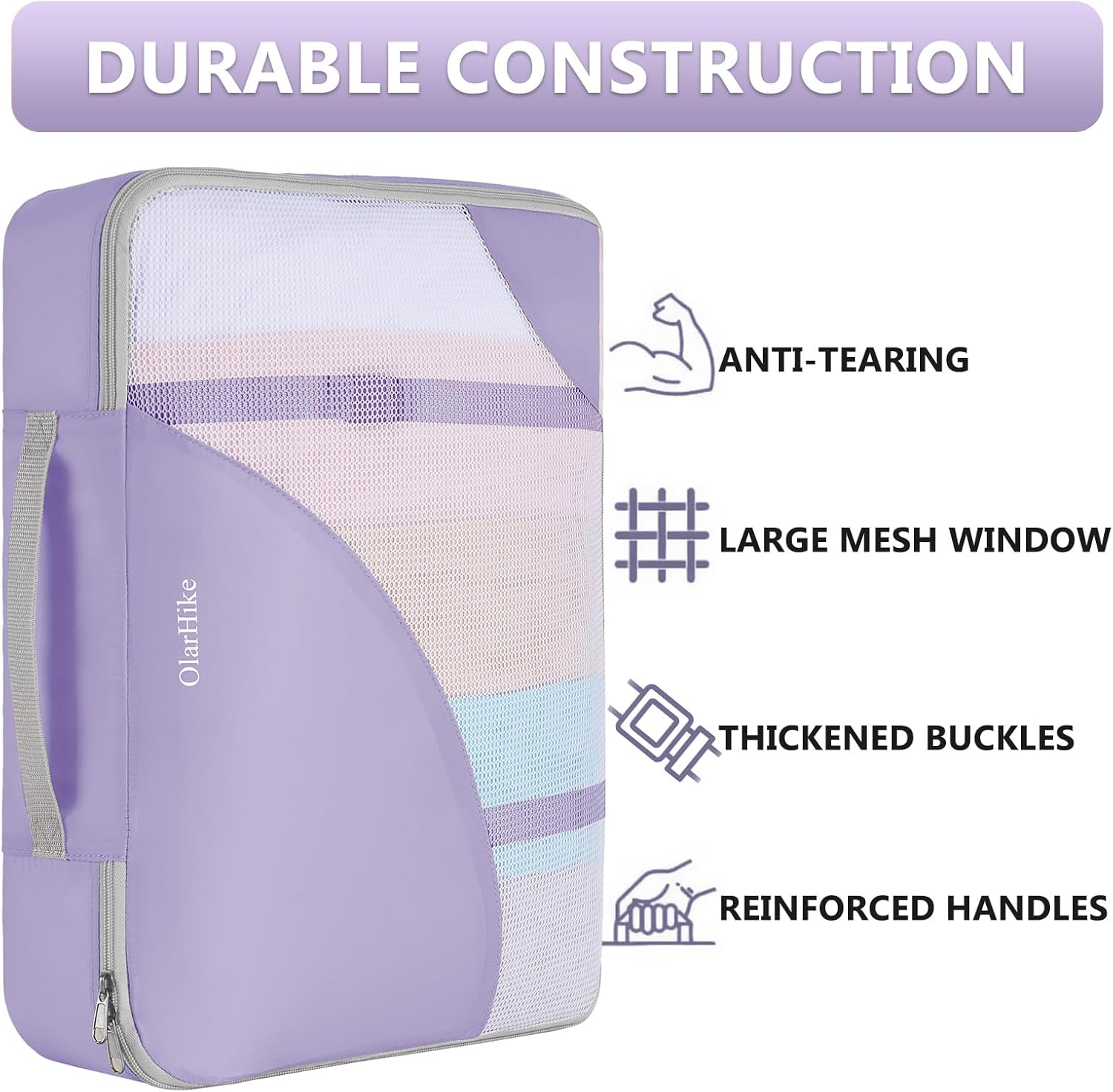 Built to Last : Crafted with anti-tear fabric, reinforced double seams, and high-density stitching, OlarHike packing cubes are made for durability. The LST-tested mesh can withstand up to 4x stronger tension, standing up to the demands of frequent travel