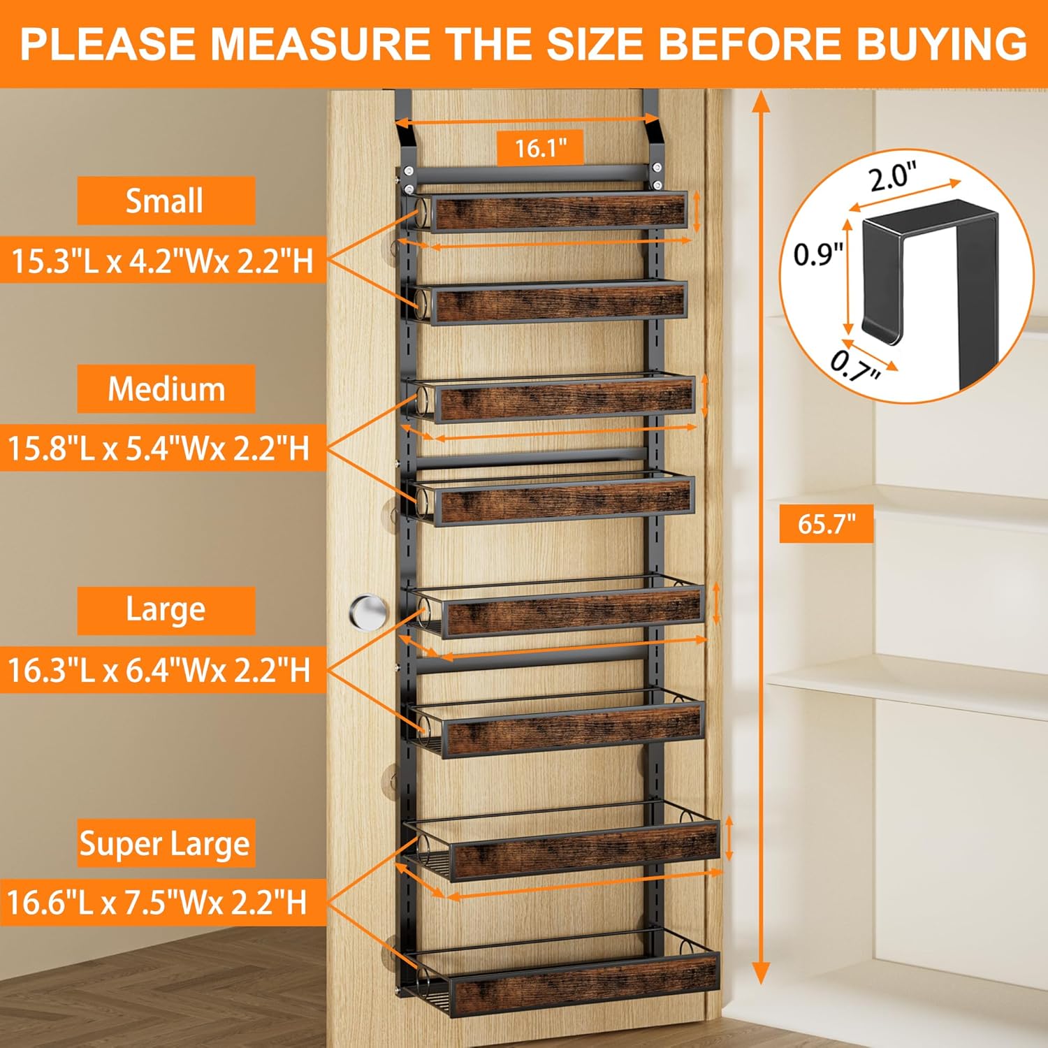 β‘γππππππππππ ππππππ & πππππ ππππππππγ The pantry door organizer features adjustable shelves,They can easily hold a lot of different size and height,including spice jars,seasoning containers,large bottles,cans,snacks,food,coffee syrup.Keeping everything tidier and convenient to reach