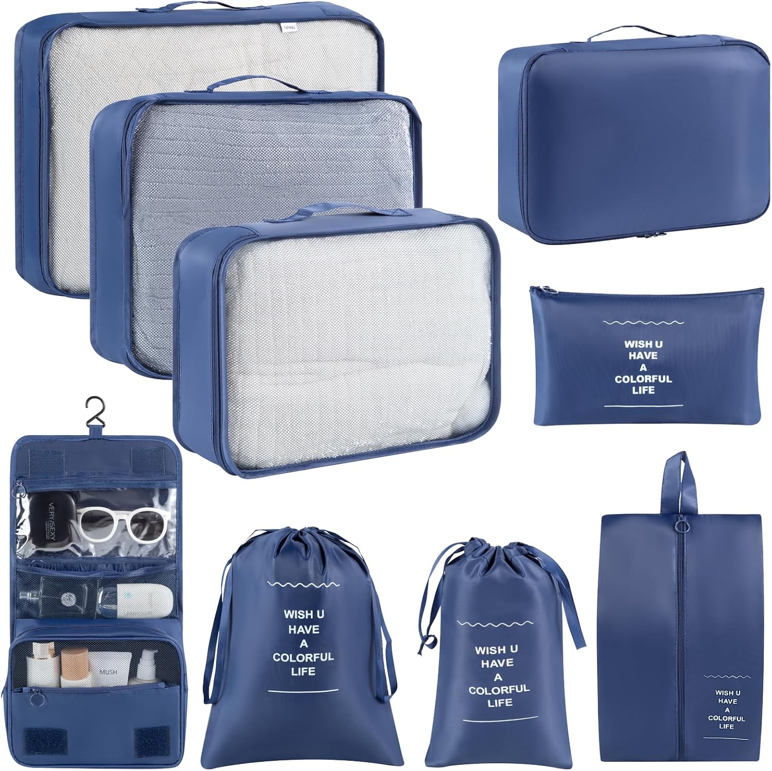 9 Set Packing Cubes for Travel Essentials, Suitcase Organizer Bags for Airplane Road Trip Camp – Navy Blue