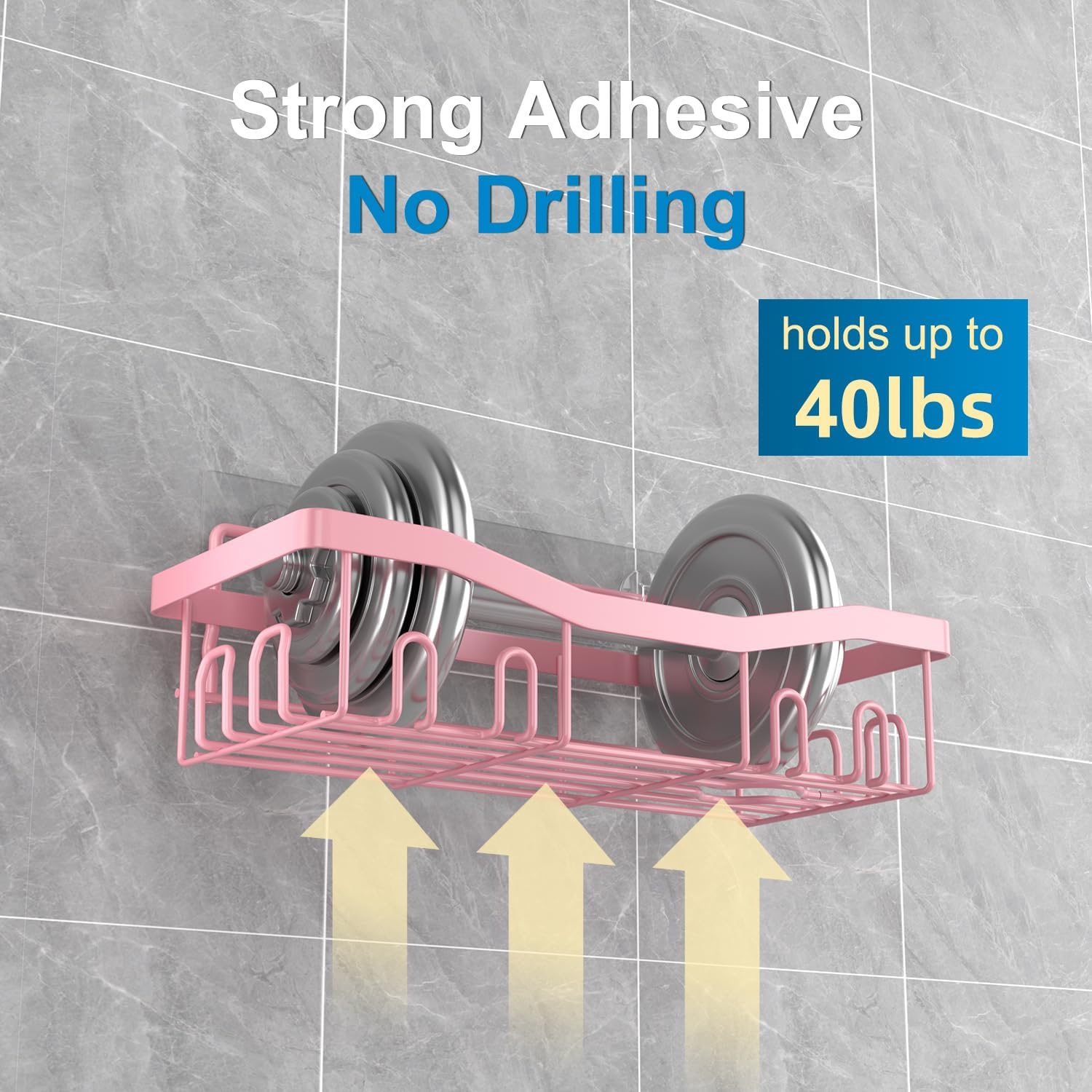 Strong Load-bearing:Shower Shelf come with ultra-powerful adhesive tapes that can hold up to 40 lb.Remove Tip: Use a hair dryer to heat it up before tearing it off