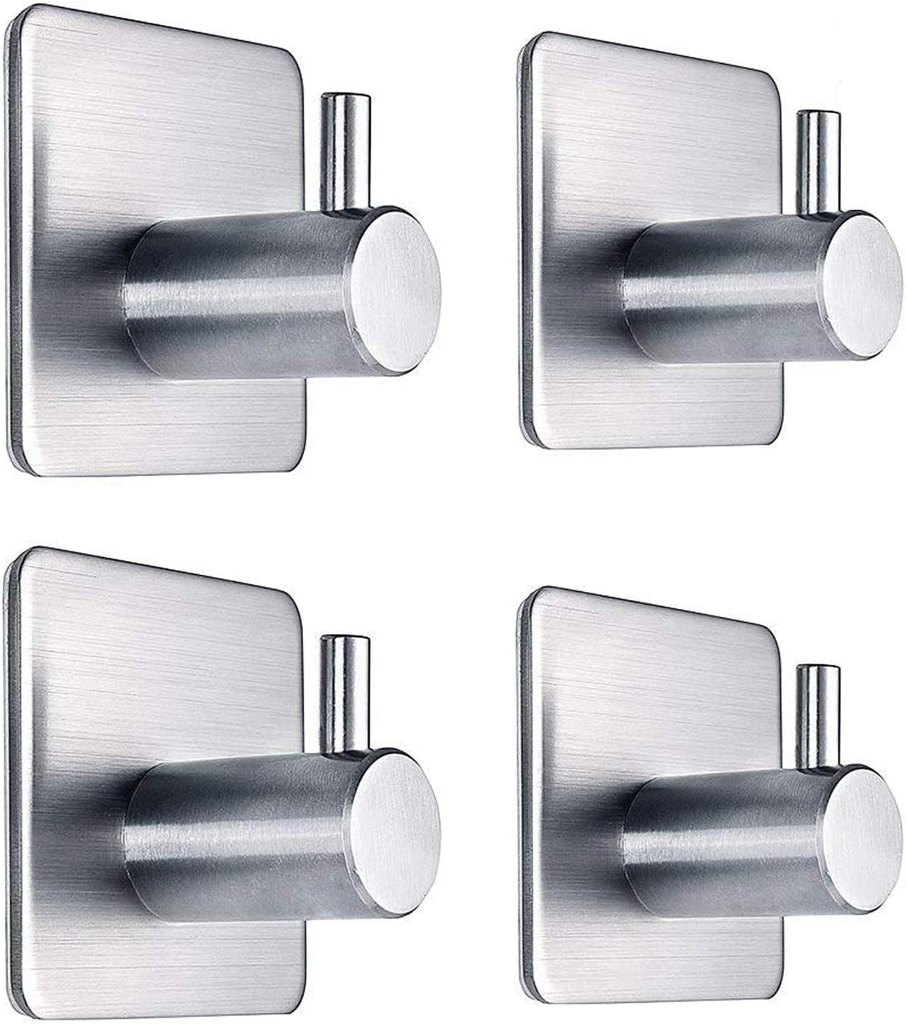 Adhesive Towel Hooks Heavy Duty Wall Hooks Waterproof Stainless Steel Hanger for Hanging Coat, Hat, Towel Robe Hook Rack Wall Mount- Bathroom and Bedroom 4-Packs