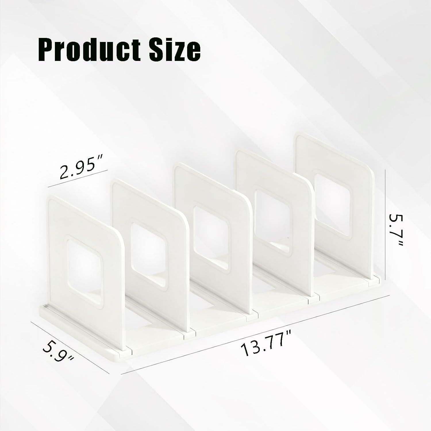 Sturdy and Durable:Made of premium plastic, this adjustable file holder is strong, thick, and resistant to deformation or breakage. The reinforced base and dividers ensure excellent stability and prevent tipping. Designed with 4 compartments (2.95 inches each) and a total size of 13.8 x 5.9 x 5.7 inches, it provides reliable, long-lasting support for your books, files, purses, and more.