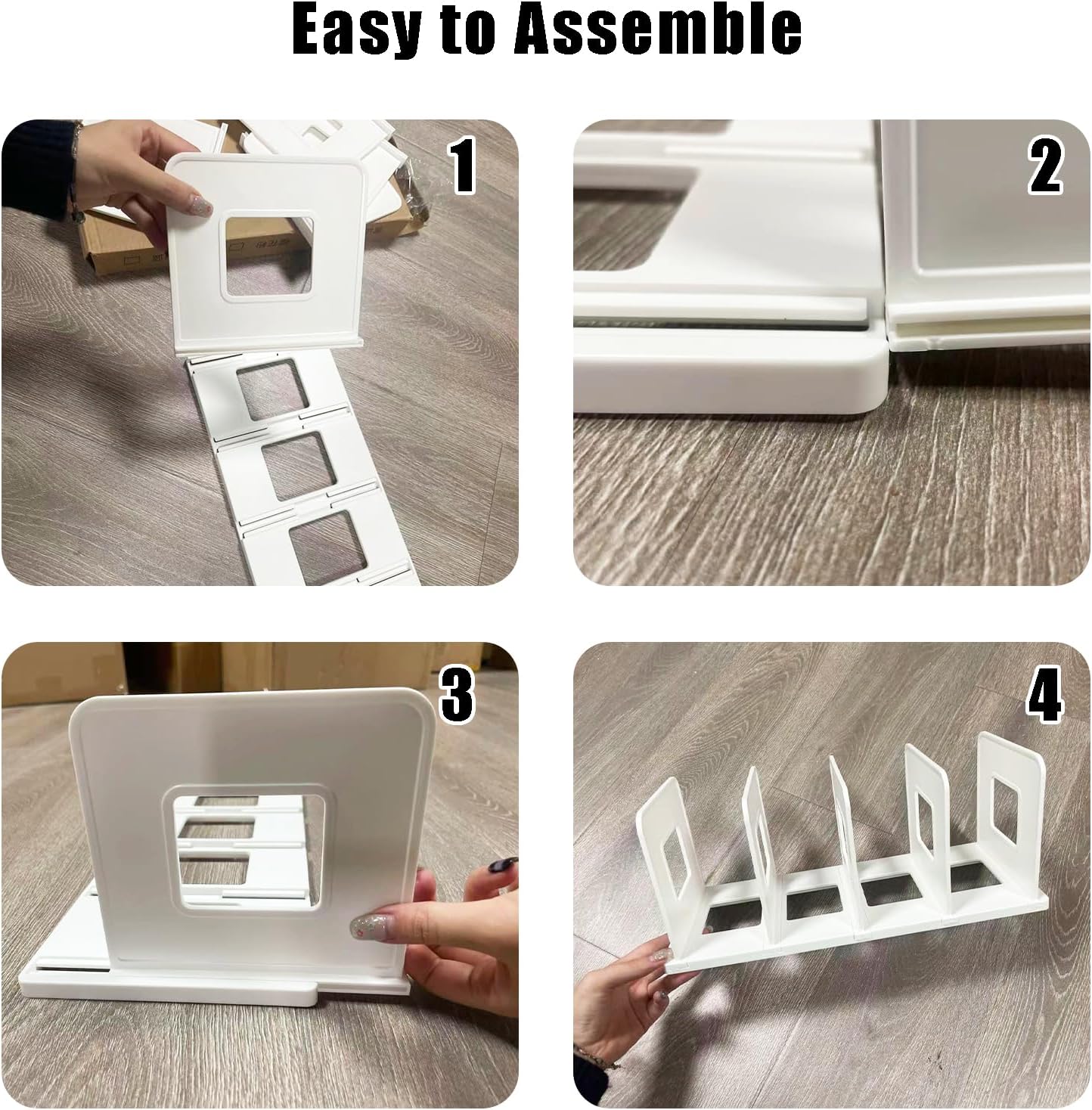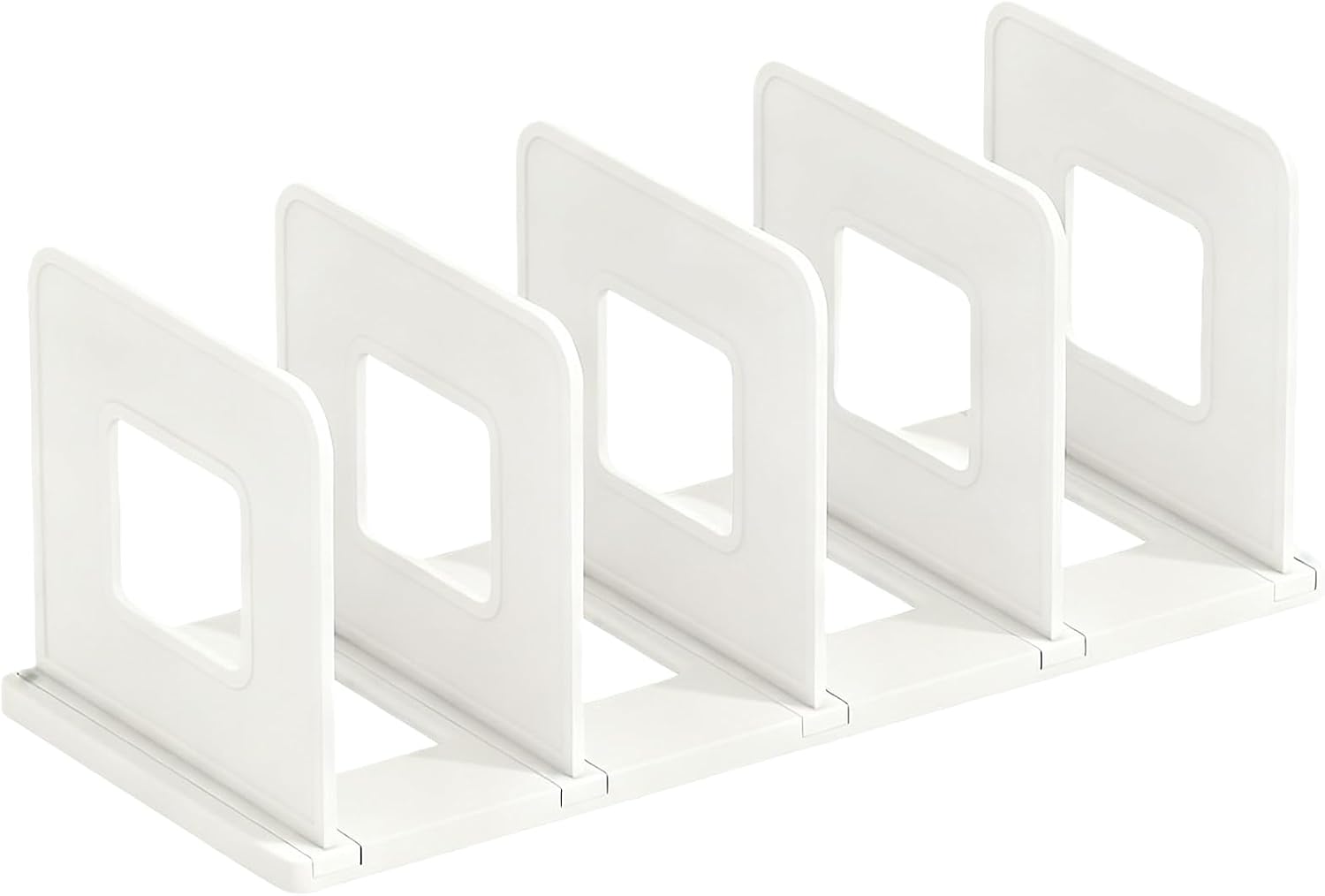 Adjustable Book Shelf Organizer 4 Section Vertical Plastic File Holder Book & Magazine Rack Folder Sorter Book Organizer for Office Home Closet & Handbag Storage (White)