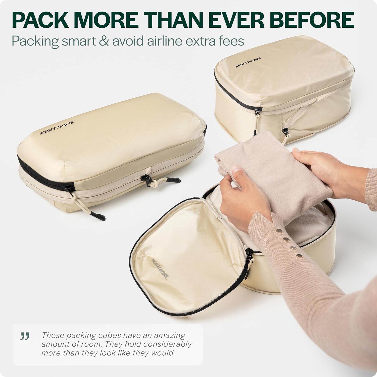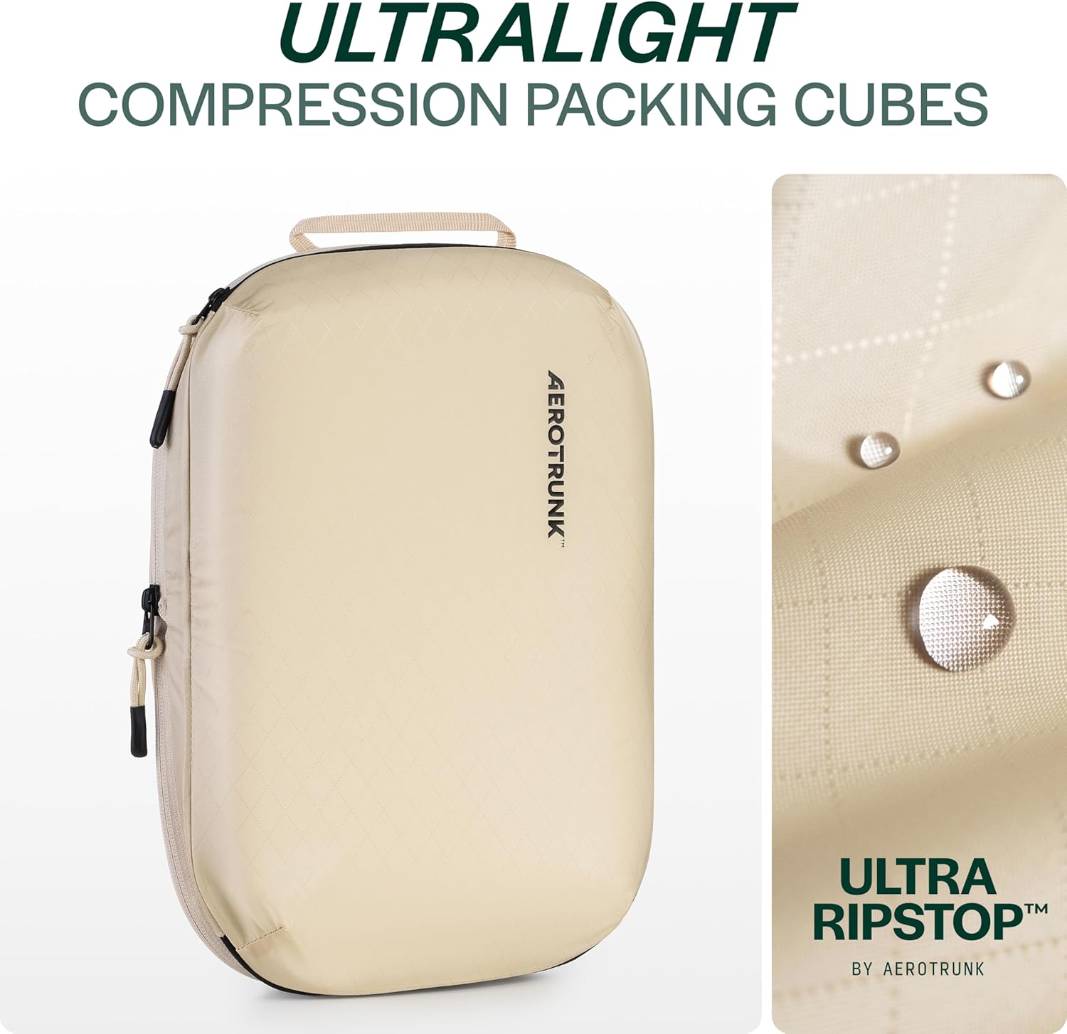 Aerotrunk Ultralight Compression Packing Cubes – Lightweight Travel Organizers for Suitcases and Luggage (6-Pack, Beige)