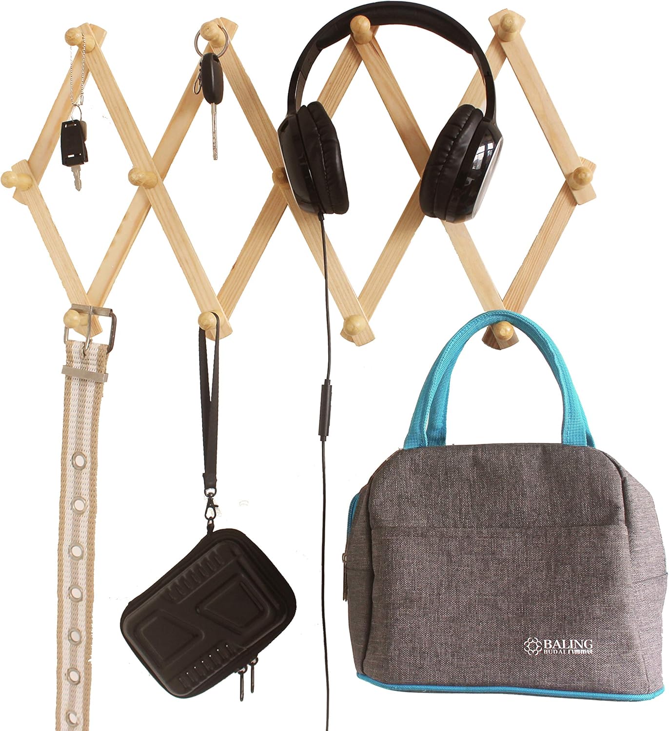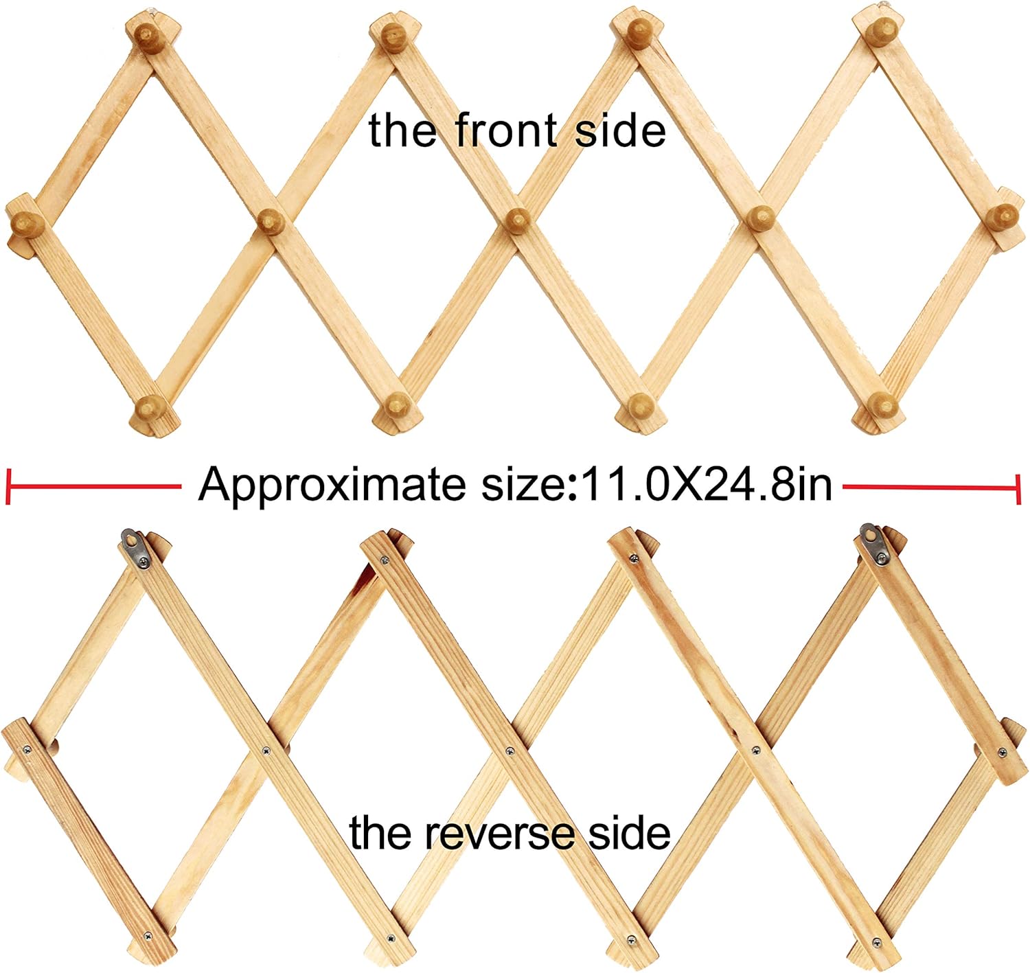 AMAPON Accordion Style Expandable Wall Wooden Coat Rack 13 Hooks (Pegs) Hang Hats Jackets Coffee Mug Purses Necklaces Towels Cap Leash Scarves Data Line Kitchenware
