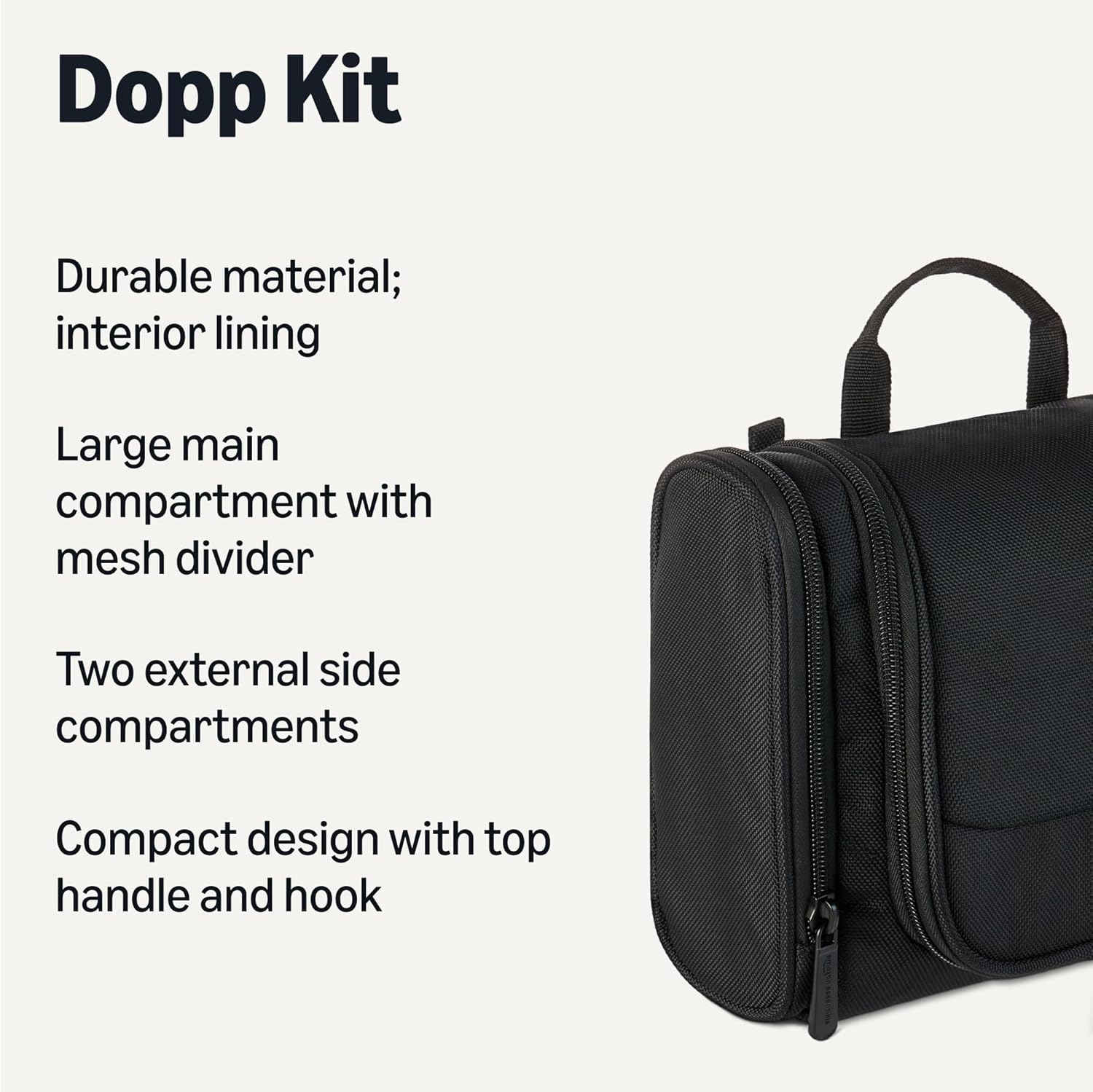 Amazon Essentials Spacious Toiletry Bag, Hanging Cosmetic Dopp Kit with Compartments, Portable, Polyester, Black (Previously Amazon Basics)