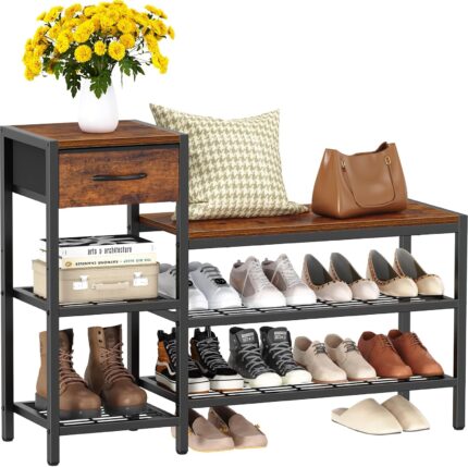【MULTI-FUNCTIONA BENCH】The total size is 27.6″ long x 11″ deep x 19.5″ tall.The shoe bench is versatile to use in your entryway, bedroom, living room, bathroom, garage, hallway or small space.