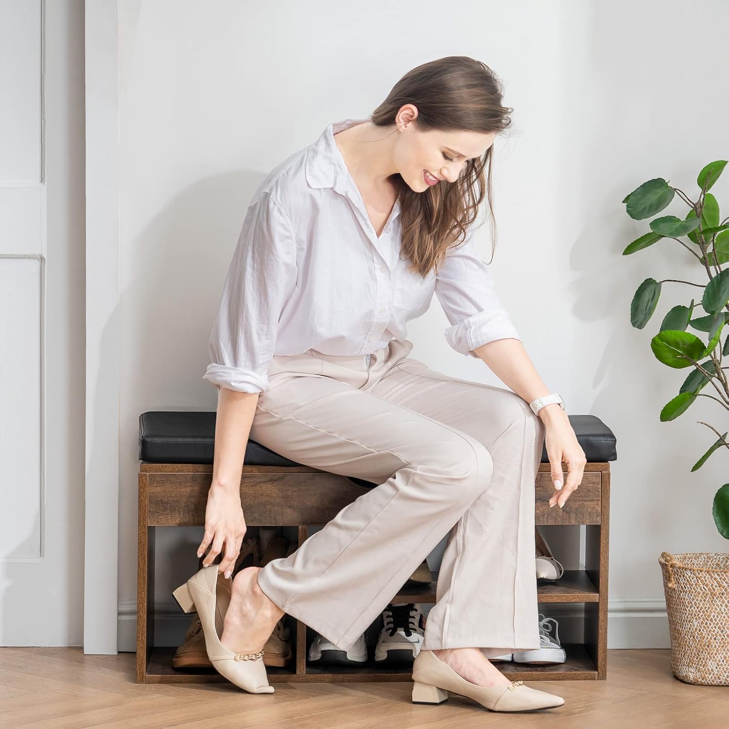 【Sturdy and Long-Lasting Quality】Crafted from 0.6” thick MDF and melamine boards, this entryway bench stands out from most products on the market that use ordinary particleboard. It can support up to 360 pounds, ensuring years of sturdy and elegant use.
