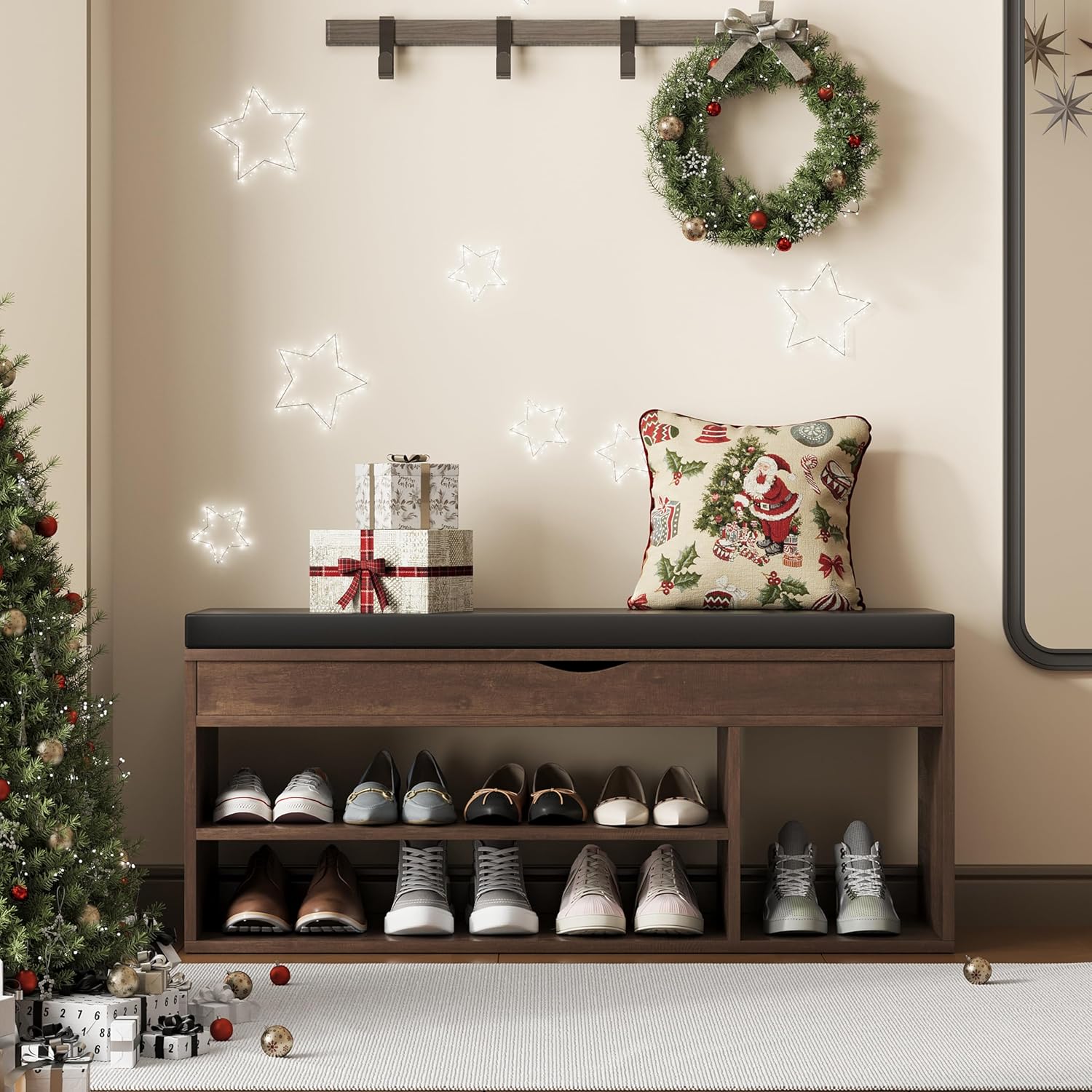 【Dimensions & Thoughtful Design】Overall dimensions: 39.4″L*11.8″W * 17.3″H. The shoe bench comes with 2 robust alloy hinges and 1 center hinge, allowing the lid to stay at any angle and preventing pinched fingers, providing safer and more convenient use.