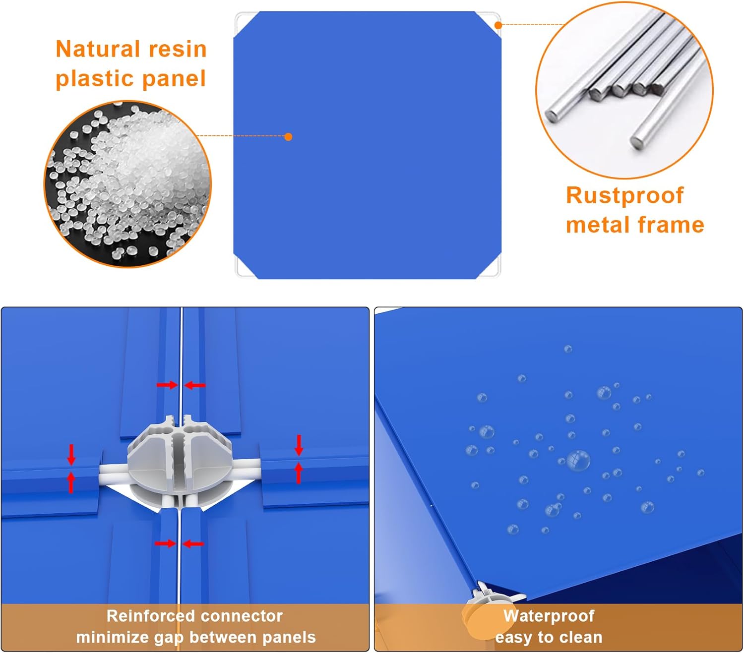 Panel: 24 pcs Round connector (regular): 18 pcs Bottom Connector (high feet): 8 pcs Wood mallet: 1 pcs Manual: 1 pcs Tips 1: No climbing to prevent tipping Tips 2: Do not put sharp objects in it Tips 3: Do not place the product near heat source Tips 4: Do not expose the product to the sun and rain for a long time Tips 5: If there is peculiar smell after unpack, please rest assured it is harmless, place it 1-2 days in the ventilated place