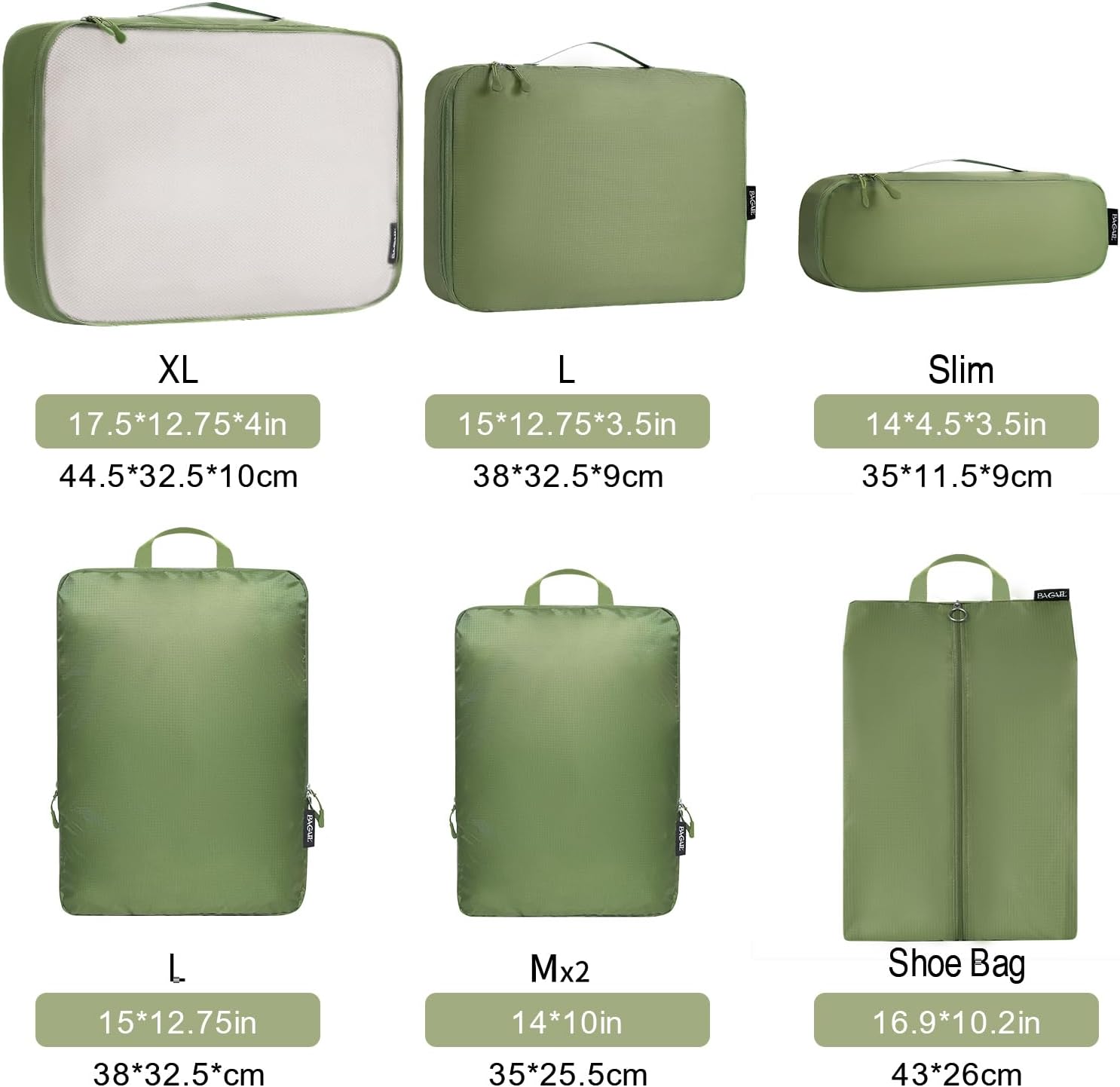 Bagail Ultralight Compression Cubes 7 Set – 3 Packing Cubes, 3 Organizers, and 1 Shoe Bag