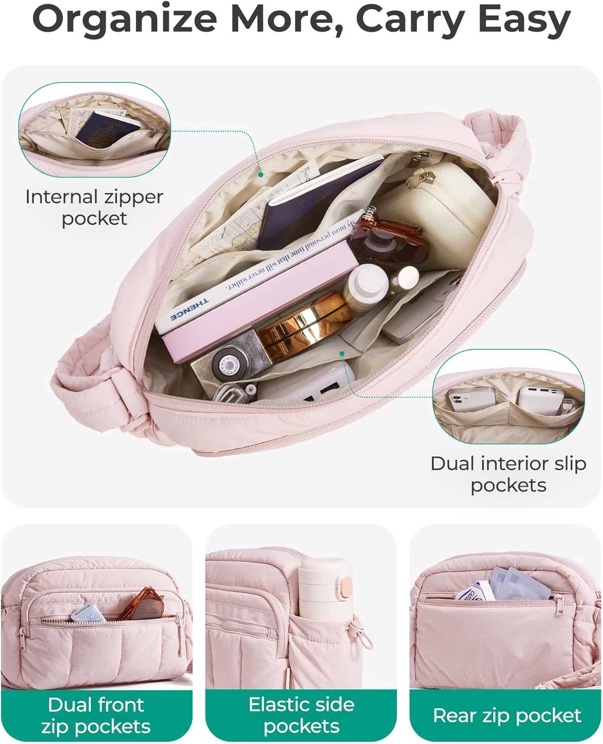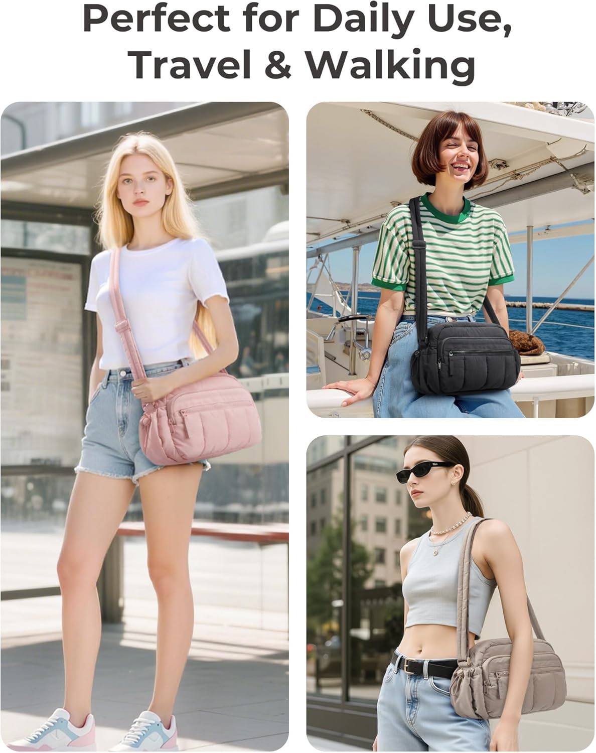 Versatile for All Occasions: Mediun quilted puffy crossbody bag can be used as a purse, handbags, shoulder bag and tote bag. Designed for versatile use – ideal for travel, outdoor activities, gym workouts, cycling, hiking, and everyday carry
