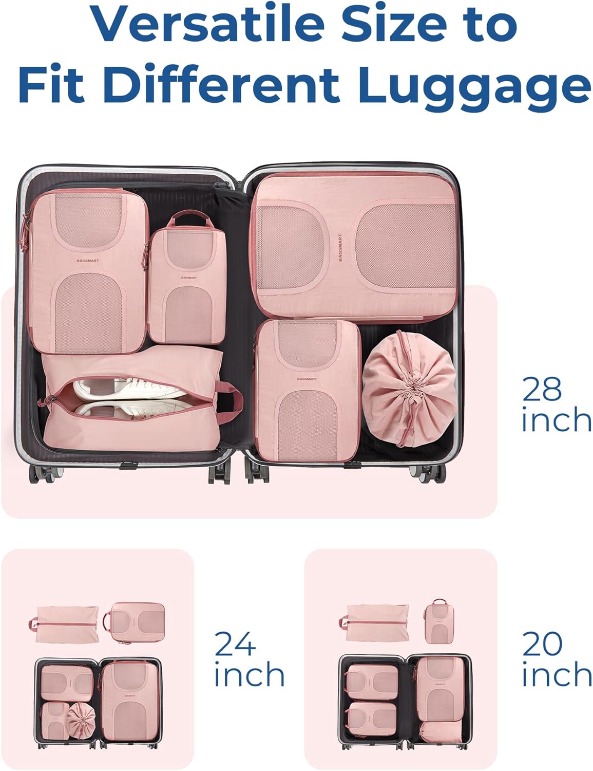 BAGSMART Compression Packing Cubes, 6 Set Packing Cubes for Suitcases, Lightweight Suitcases Organizers Bag Set & Compression Travel Cubes, Travel Essentials Packing Organizers