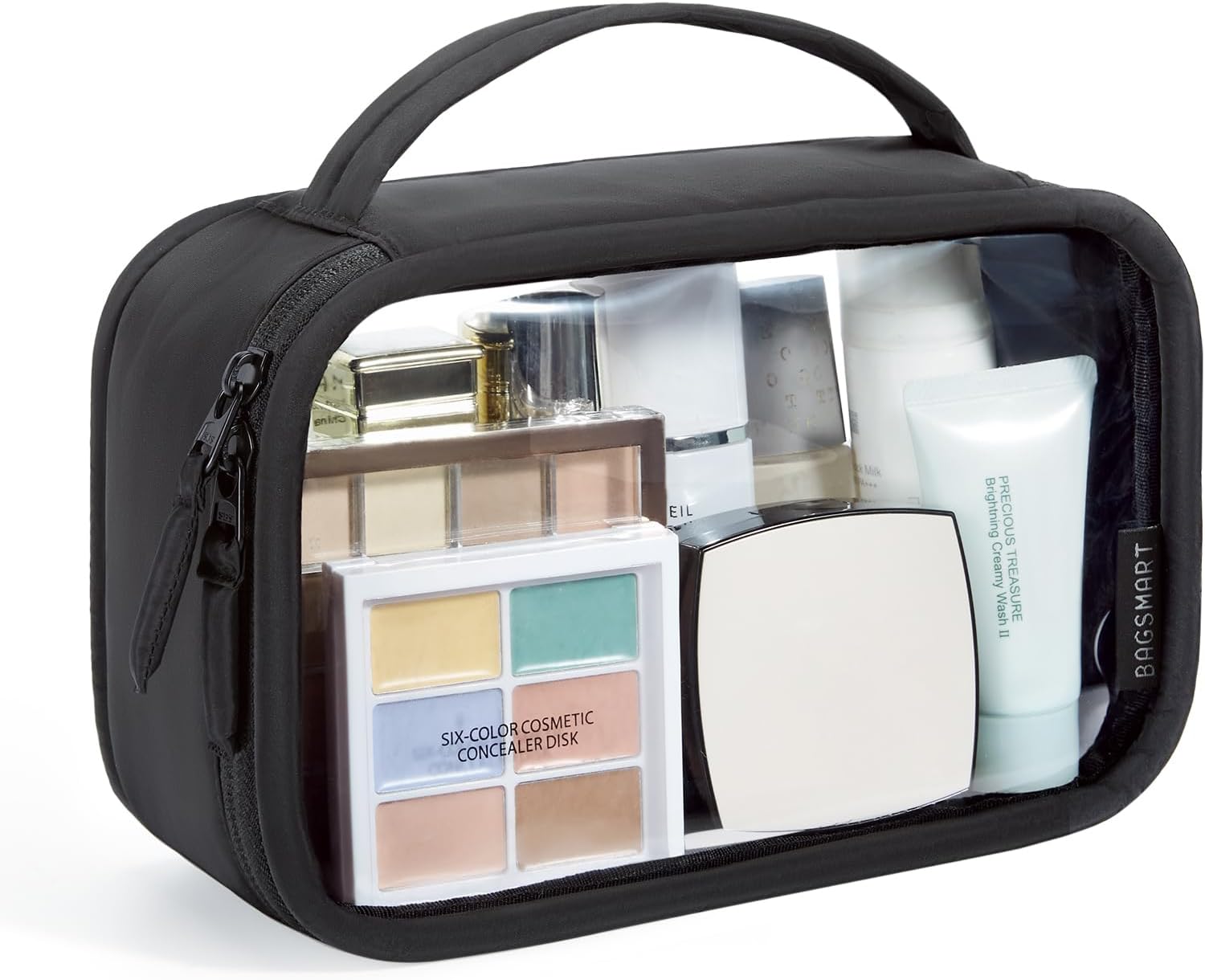 Lightweight and Portable with Ample Storage Space: Weighing just 0.33 lbs and featuring a soft puff handle, this bag is perfect for travel and fits easily into your carry-on. The transparent design makes it ideal for storing travel-sized toiletries, cosmetics, medications, personal items, and more