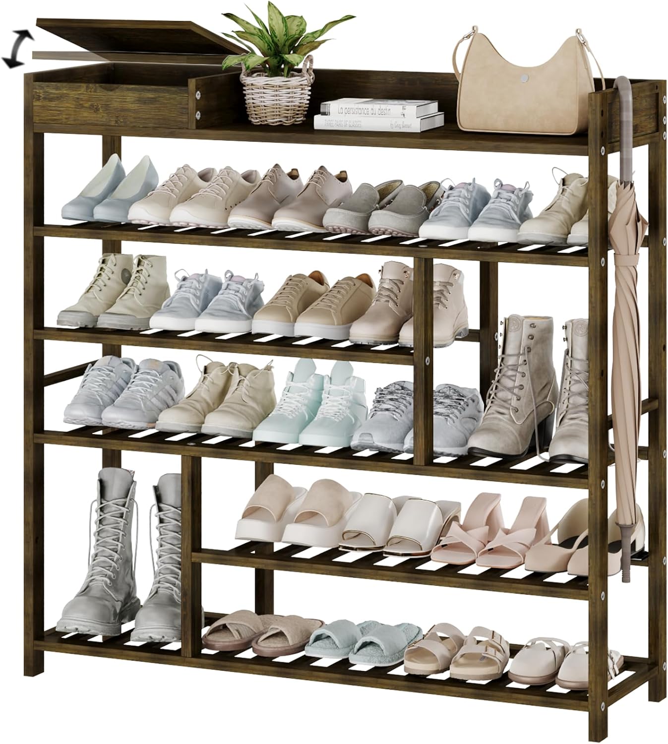Bamworld Shoe Rack for Front Door Entrance Bamboo Shoe Organizer with Storage Box Free Standing Shoe Cabinet Wooden Shoe Storage Shelf for entryway, Closet and Doorway (Dark Brown)