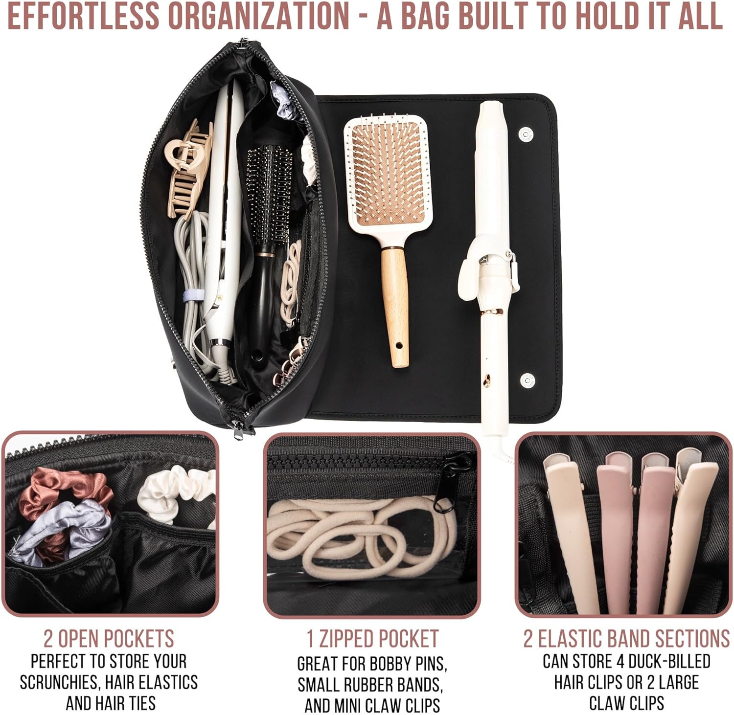 BAREFOOT CARIBOU Hair Tools Travel Bag and Heat Resistant Mat for Flat Irons, Straighteners, Curling Iron, and Haircare Accessories, 2-in-1 design, with Interior Pockets, Portable Organizer