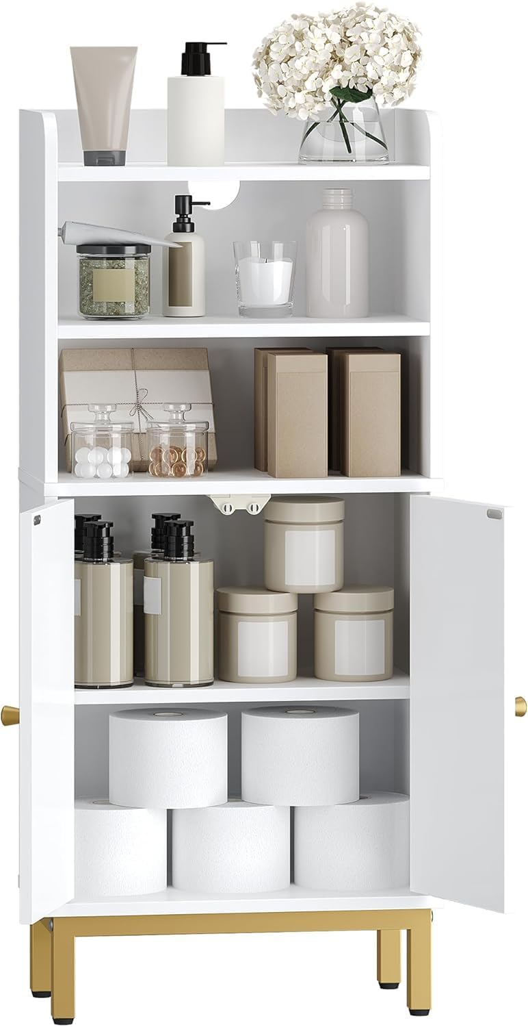 Bathroom Storage Cabinet, Small Floor Cabinet with 2 Door and Shelves, Toilet Paper Cabinets, Bathroom Organizer with Adjustable Shelf, for Small Spaces White 7.1″ D x 14.6″ W x 32.7″ H