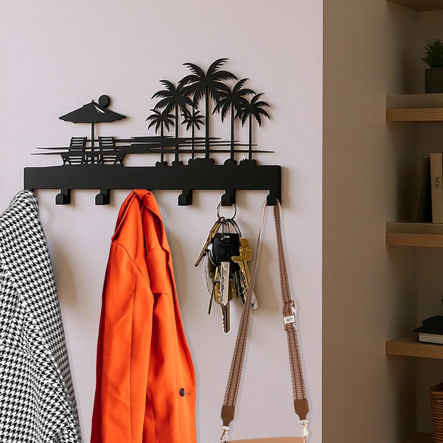 Tropical Style Design: The beach key hooks wall mount is composed of sunset, coconut trees, umbrellas and beach chairs, presenting the natural and comfortable tropical scene, and placing it at home can bring you a relaxed and cozy atmosphere.