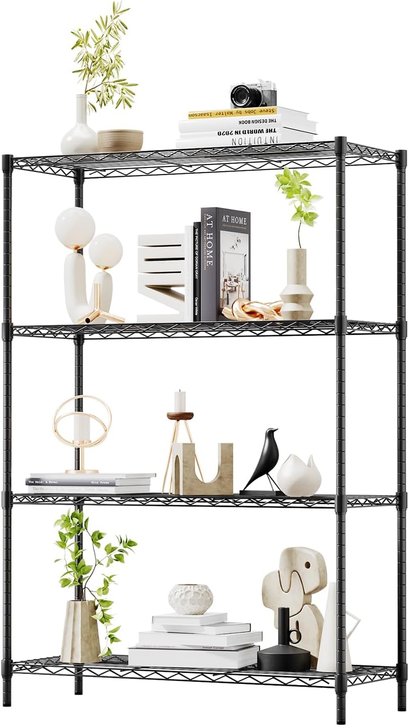 BestOffice | 4-Tier Wire Storage Shelves | 36x14x54 | Black | with Adjustable Racks | Heavy-Duty Metal Shelf, Holds Upto 1000 lbs | No-Tool Assembly | Ideal for Home & Garage Shelving