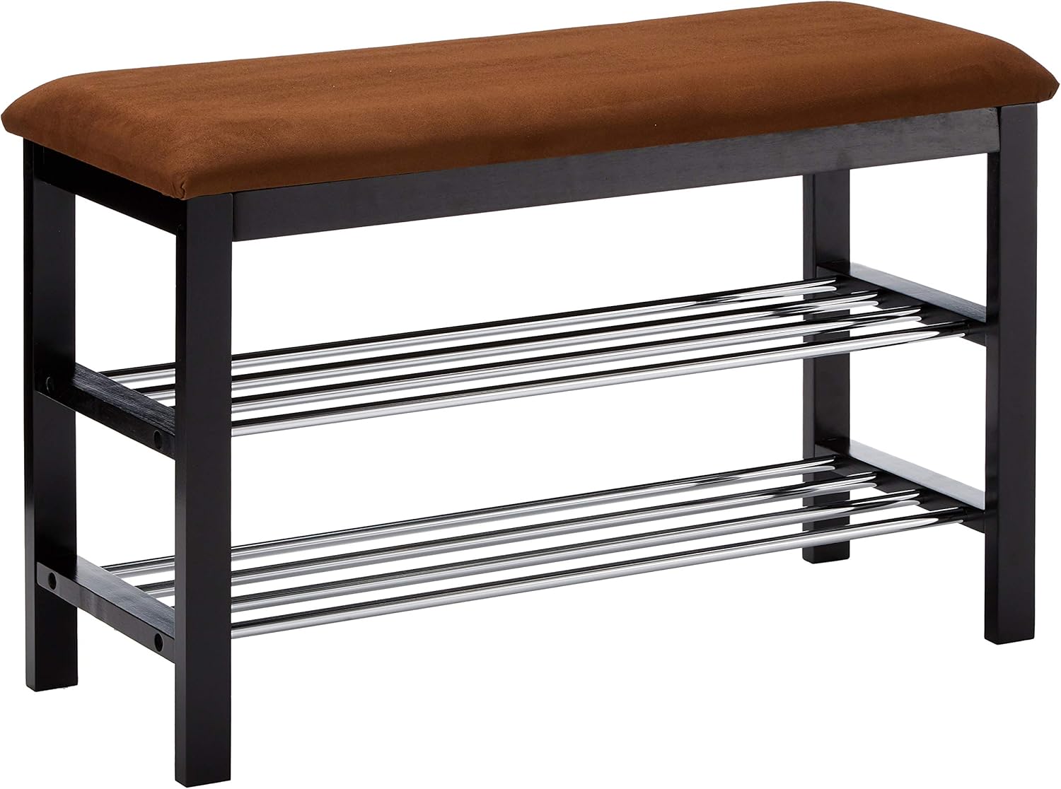 Black / Chocolate Micro Fabric Shoe Rack Organizer & Hallway Bench.
