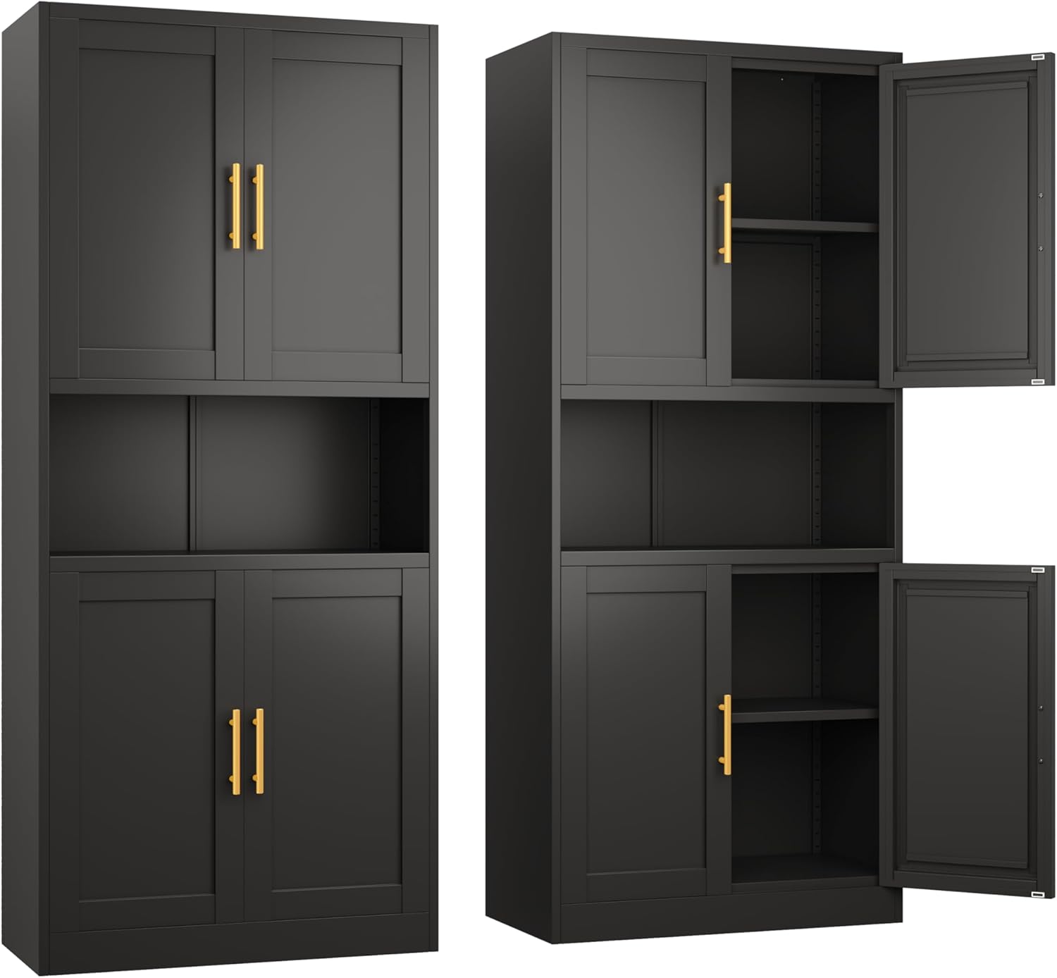 Black Metal Pantry Cabinet with 4 Doors, 2 Adjustable Shelves, 61″ H Garage Storage Cabinet for for Home Office, Living Room, Dinning Room
