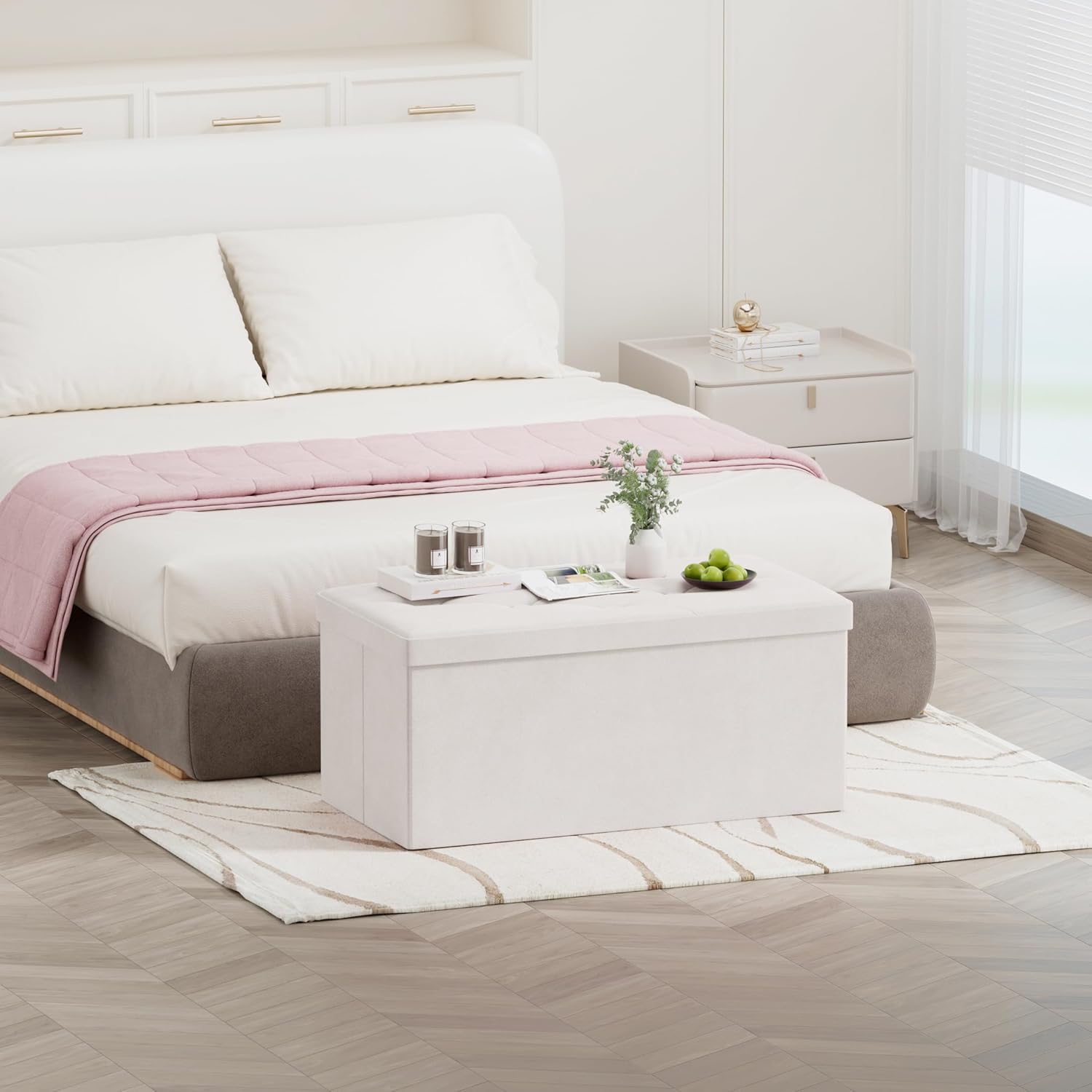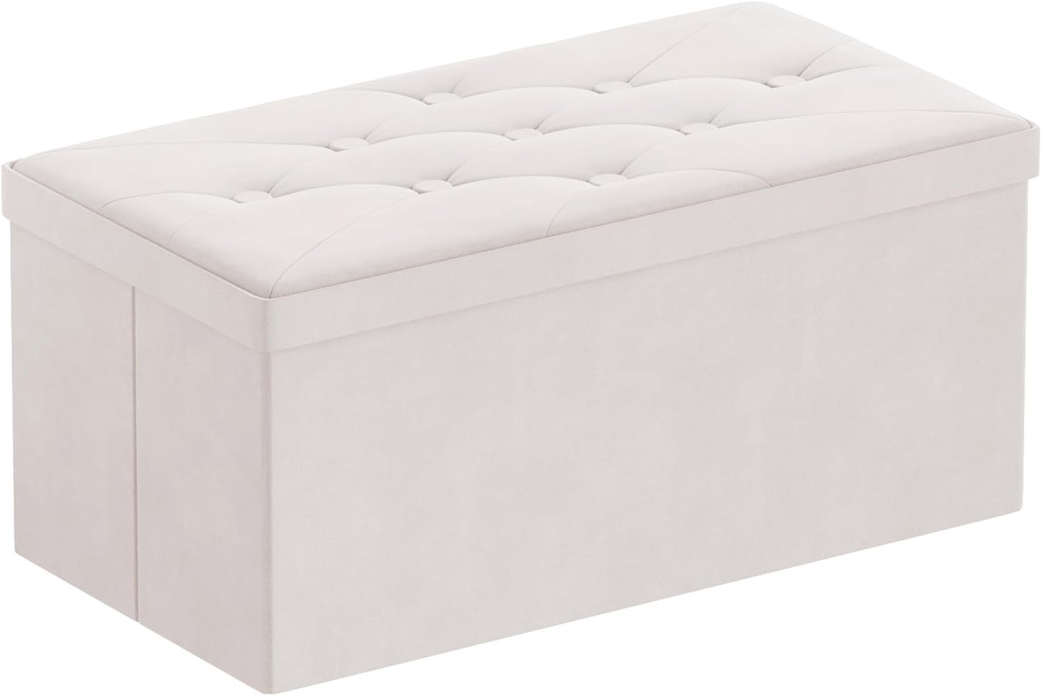BRIAN & DANY Folding Storage Ottoman Bench, Ottoman with Storage, Foot Rest, Benches Seat for Bedroom, Living Room, Entryway, Long Shoes Bench, 15.7″ x 31.5″ x 15.7″ White
