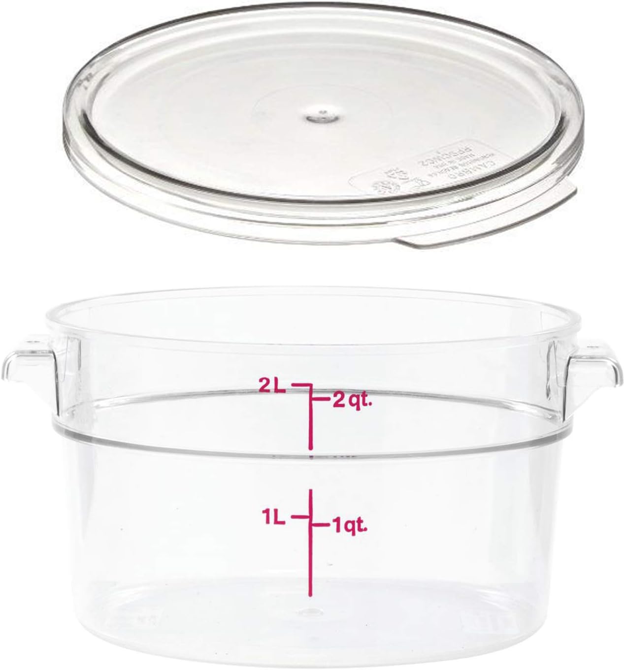 Cambro RFSCW2135 Camwear 2-Quart Clear Round Food Storage Container with Cambro RFSCWC2135 Clear Round Lid