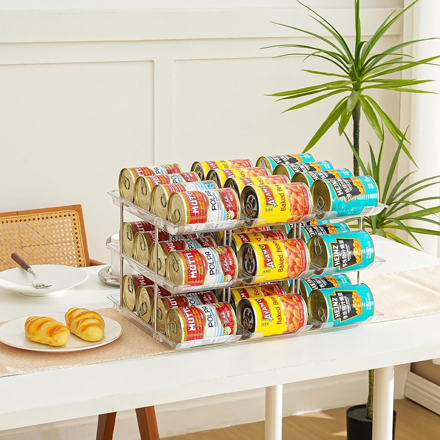 Free up pantry space:Amllas can storage rack is 4.2 inches high and 4.9 inches wide per layer. It can hold 36 cans, each measuring 4.52 inches in length. And it can be arranged according to the production date of the cans, with an automatic distribution design. Provide more storage space for your pantry.