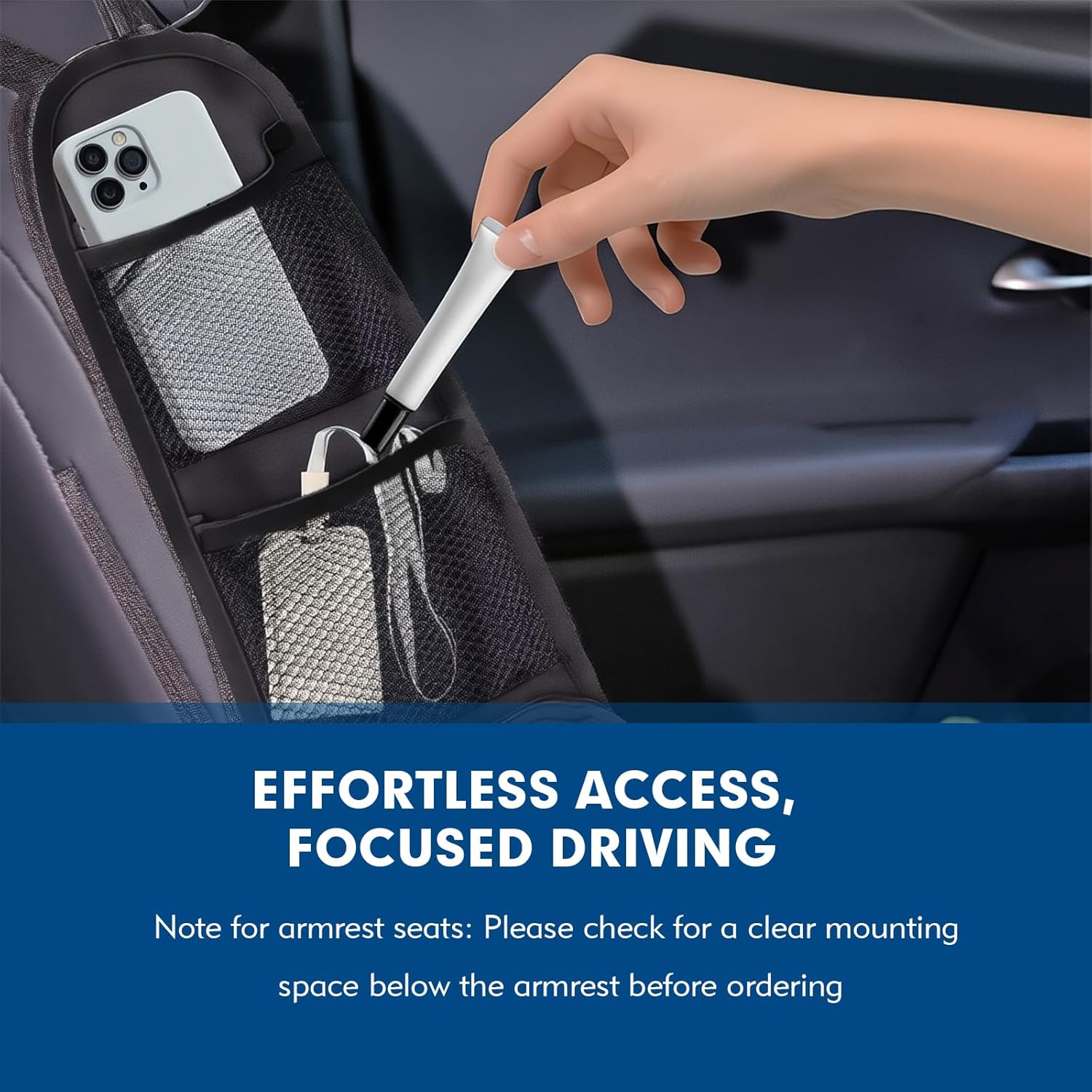 [Multi-Pocket Front Seat Organizer Bag]This organizer bag features two mesh pockets for quick access to phones/glasses and one zippered pocket for secure storage. The front seat organizer bag efficiently holds snacks, maps, and keys, keeping your vehicle clutter-free.