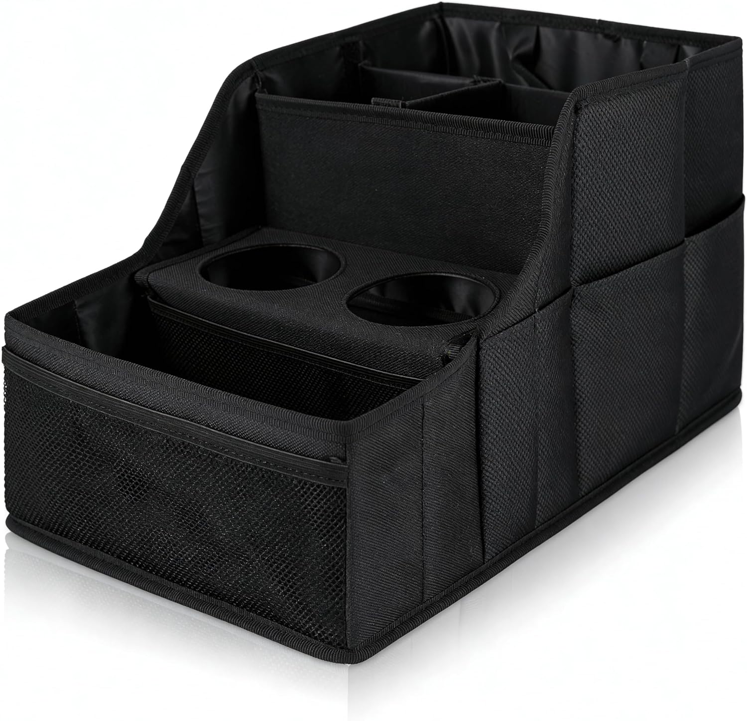 Extra Large Car Organizer Caddy with 7Compartments – Stop Car Clutter with Foldable Cup Holders & Deep Pockets for All Your Essentials