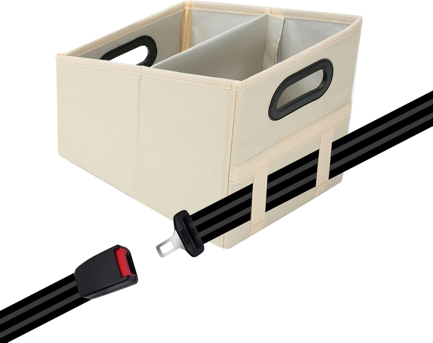 The back of the storage has two fixed shoulder straps that can be worn through the safety belt, avoid sliding in the trunk during driving
