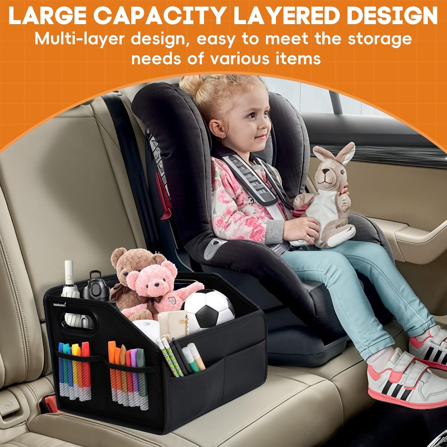 This practically sized box holds: 8-12standard water bottles (16.9oz), emergency kit, shopping bags, snacks, and toys. Perfect for organized storage without occupying excessive space. Remember to measure your available area for perfect compatibility.