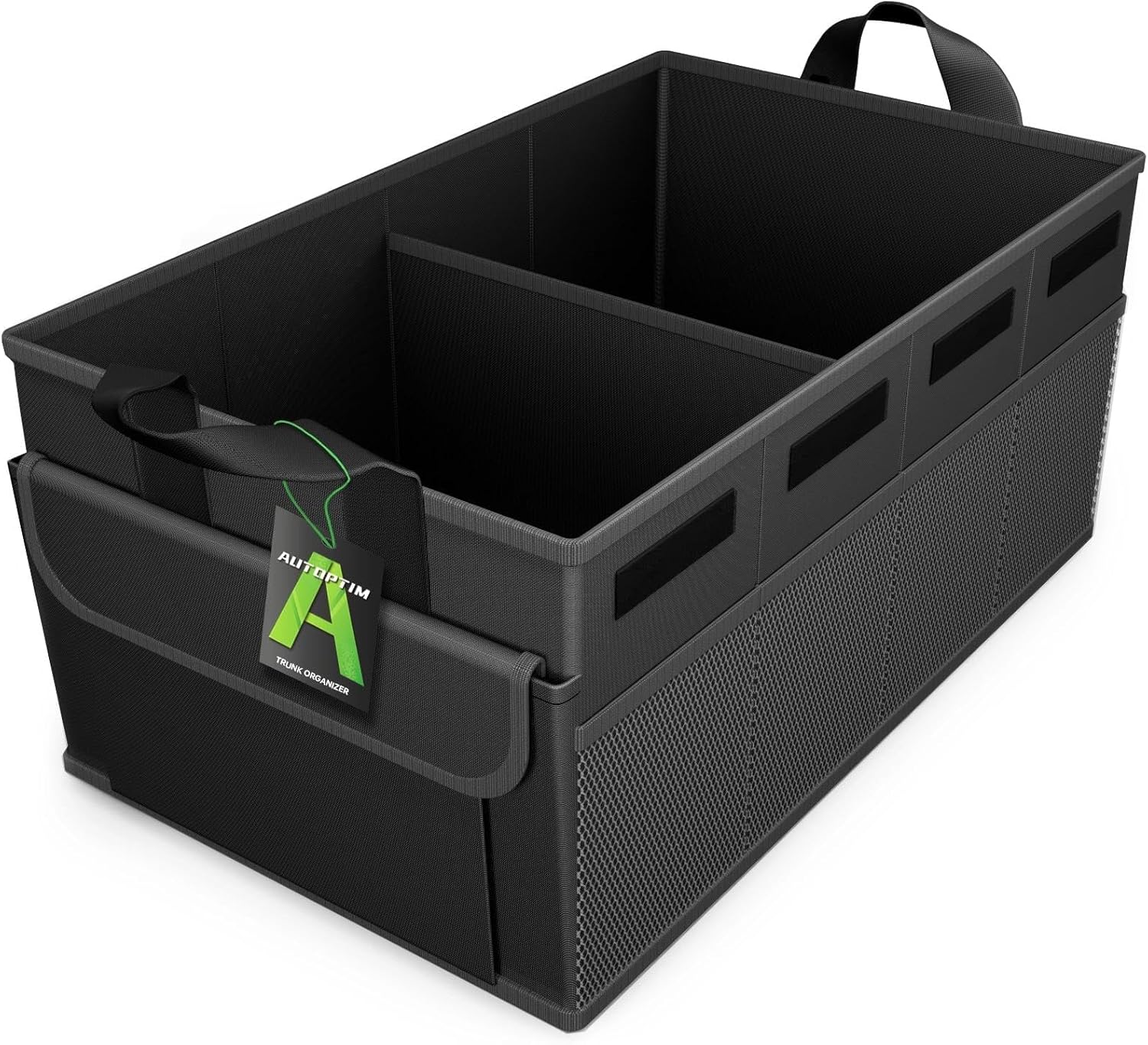 Car Trunk Organizer – 50L Collapsible Car Organizer with Non Slip Bottom for Groceries, Trunk Storage with Base Panel for SUV Sedan Van, 2 Compartments (Black, Small)