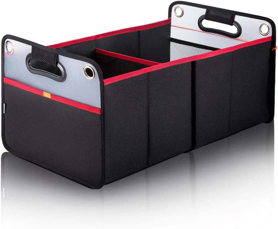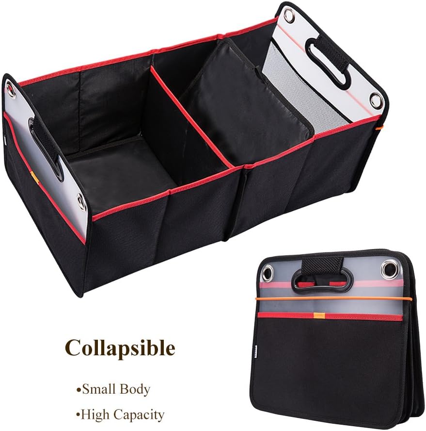 Car Trunk Organizer, Collapsible Auto Trunk Organizer Storage, Portable Grocery Cargo Container with Two Large Compartments for SUV, Vehicle, Truck, Home and Office