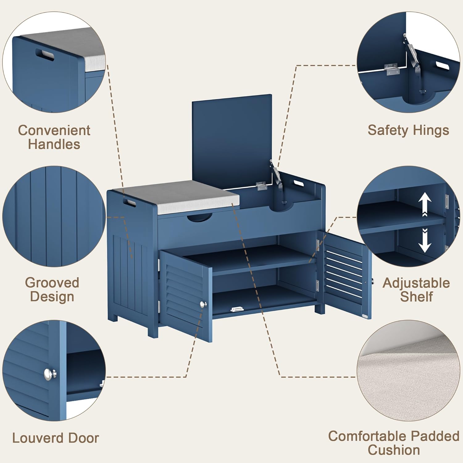 【Louvre Cabinet Door】The louvre cabinet door design prevents dust from entering ensures air circulation inside the shoe storage bench and prevents odors