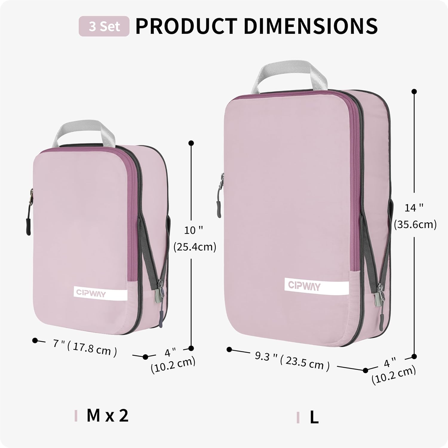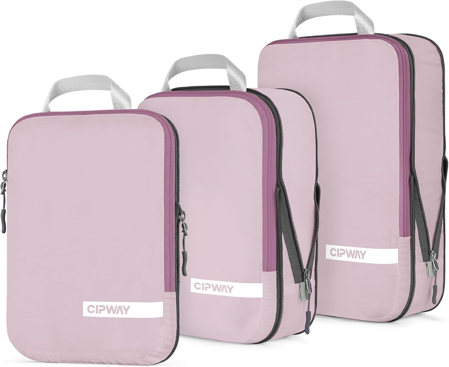 Cipway Compression Packing Cubes for Travel Ultralight Expandable Packing Organizers for Carry on Luggage (Mauve Pink 3 Set)