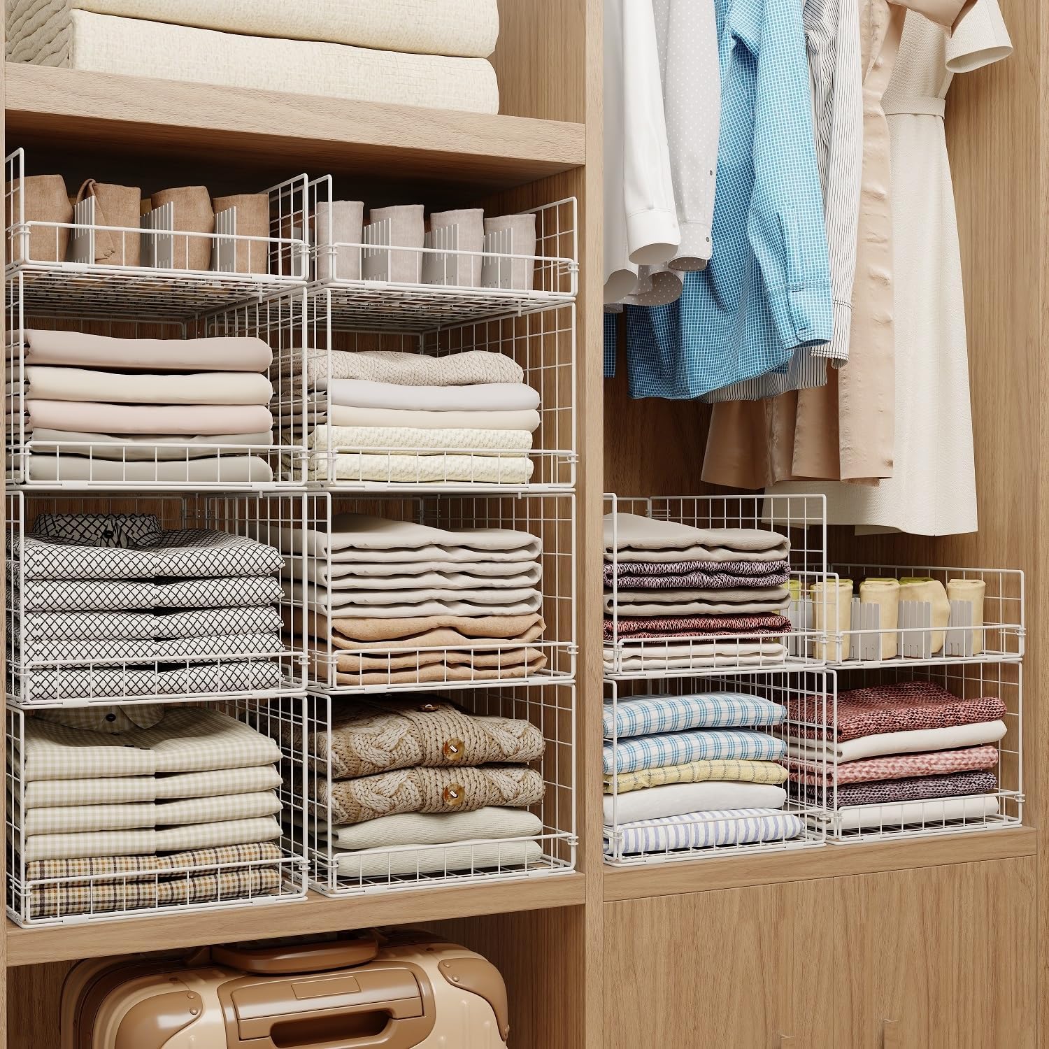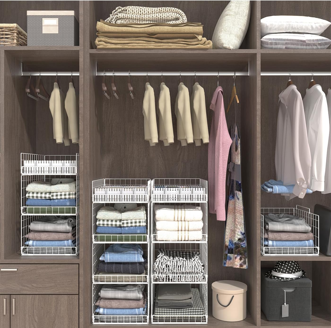 ✅【𝗦𝘁𝘂𝗿𝗱𝘆 𝗮𝗻𝗱 𝗗𝘂𝗿𝗮𝗯𝗹𝗲 𝗠𝗲𝘁𝗮𝗹 𝗙𝗿𝗮𝗺𝗲】—The stackable closet storage bins are made of quality metal with coated finishing. Very sturdy and durable. Would not bend or damage like other plastic storage baskets. You can count on it is strong enough and has a good craft .