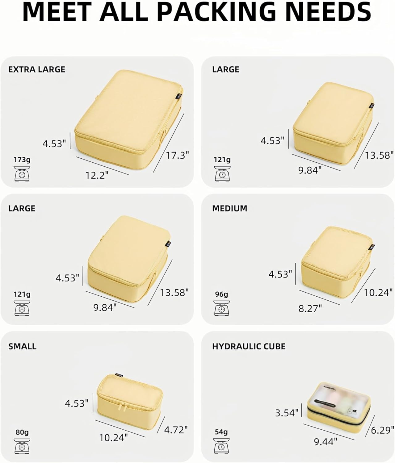 Compression Packing Cubes for Travel, 6-Piece Set (L/M/S), Double-Zip Luggage Organizers with Mesh Panels, Space-Saving Clothes Storage Bags for Suitcase & Carry-On (6 Pack, Bright Yellow)