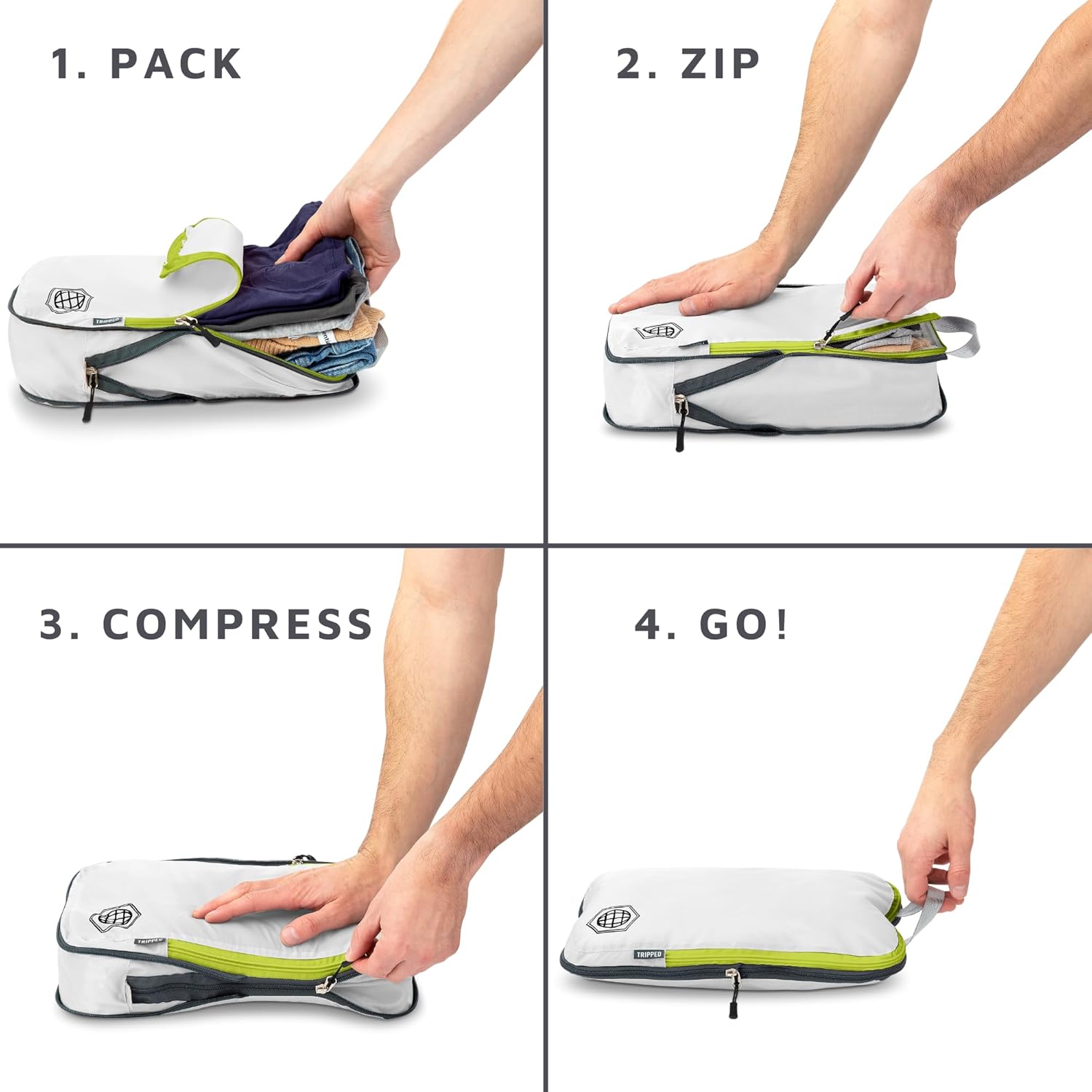 Compression Packing Cubes Set for Travel – Lightweight, Durable Clothes Organizer for Carry-On Luggage and Suitcases by TRIPPED Travel Gear