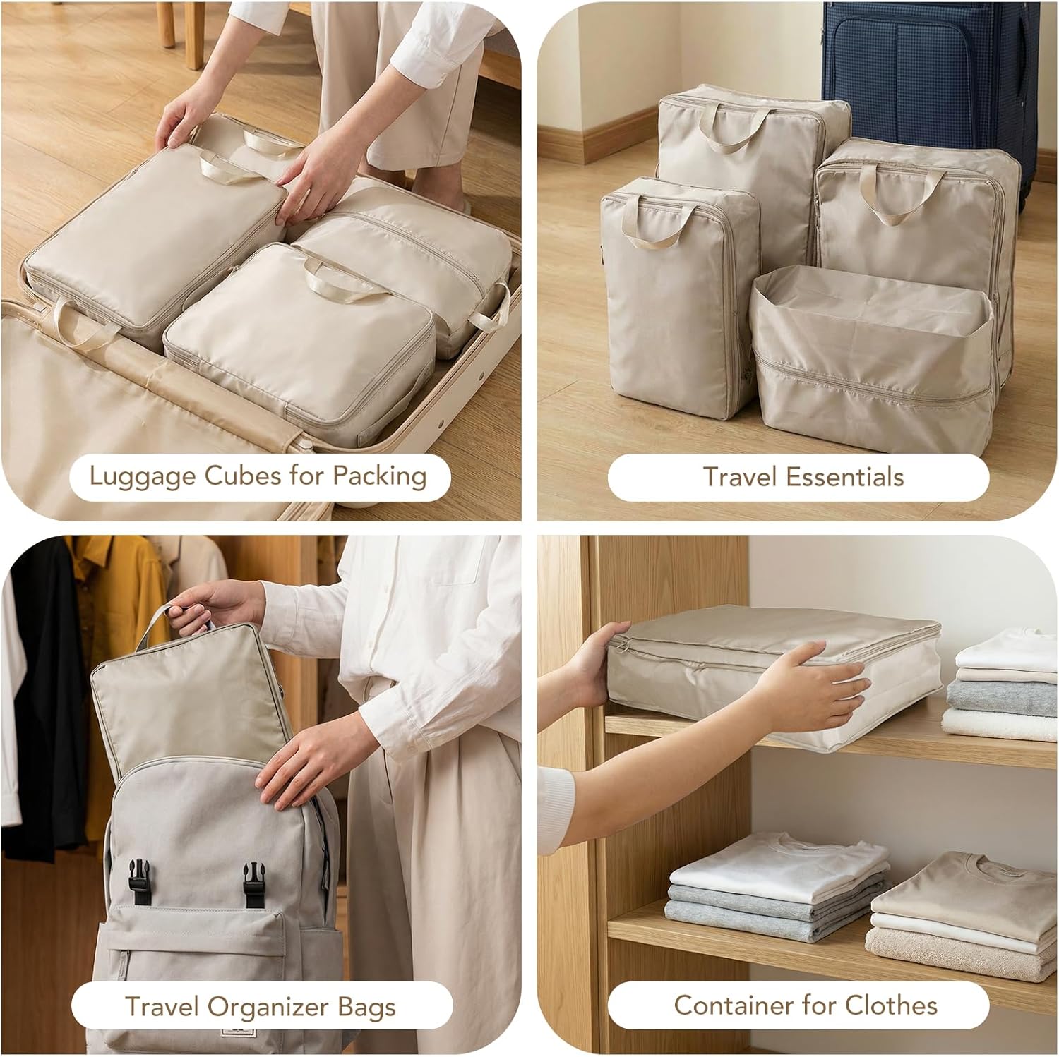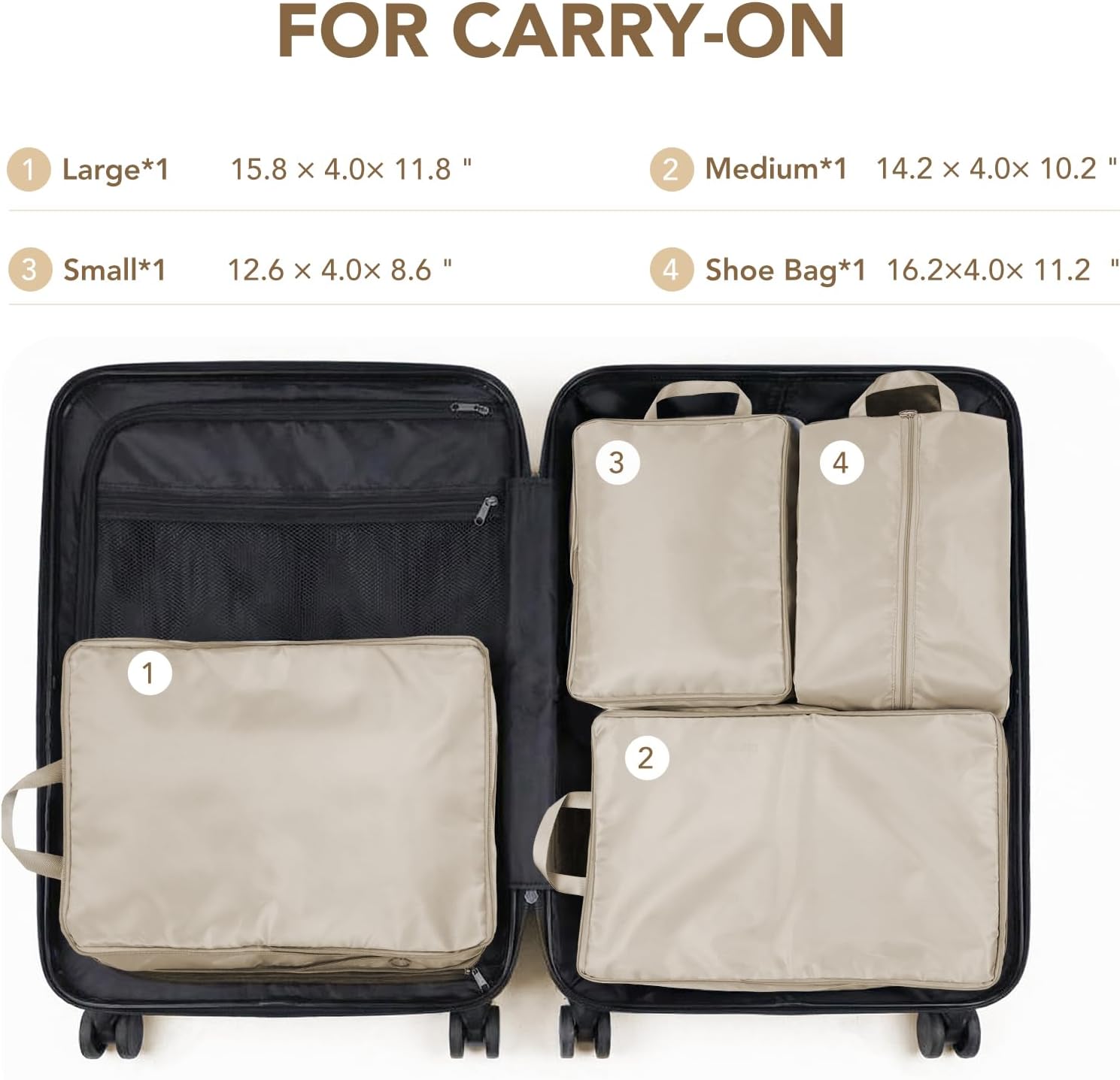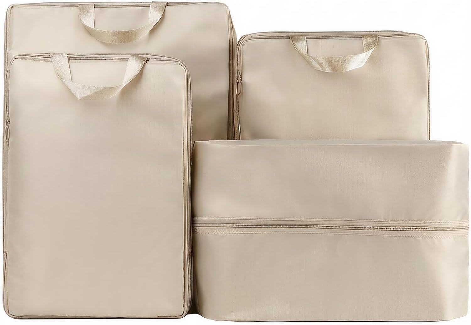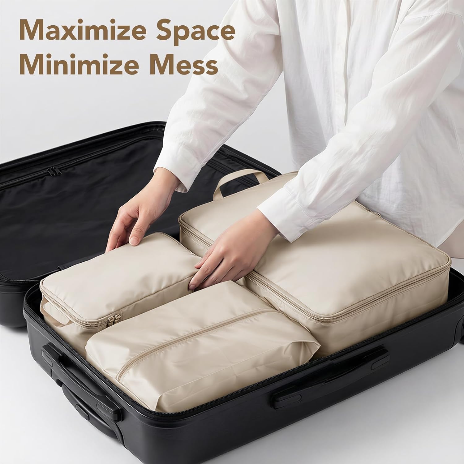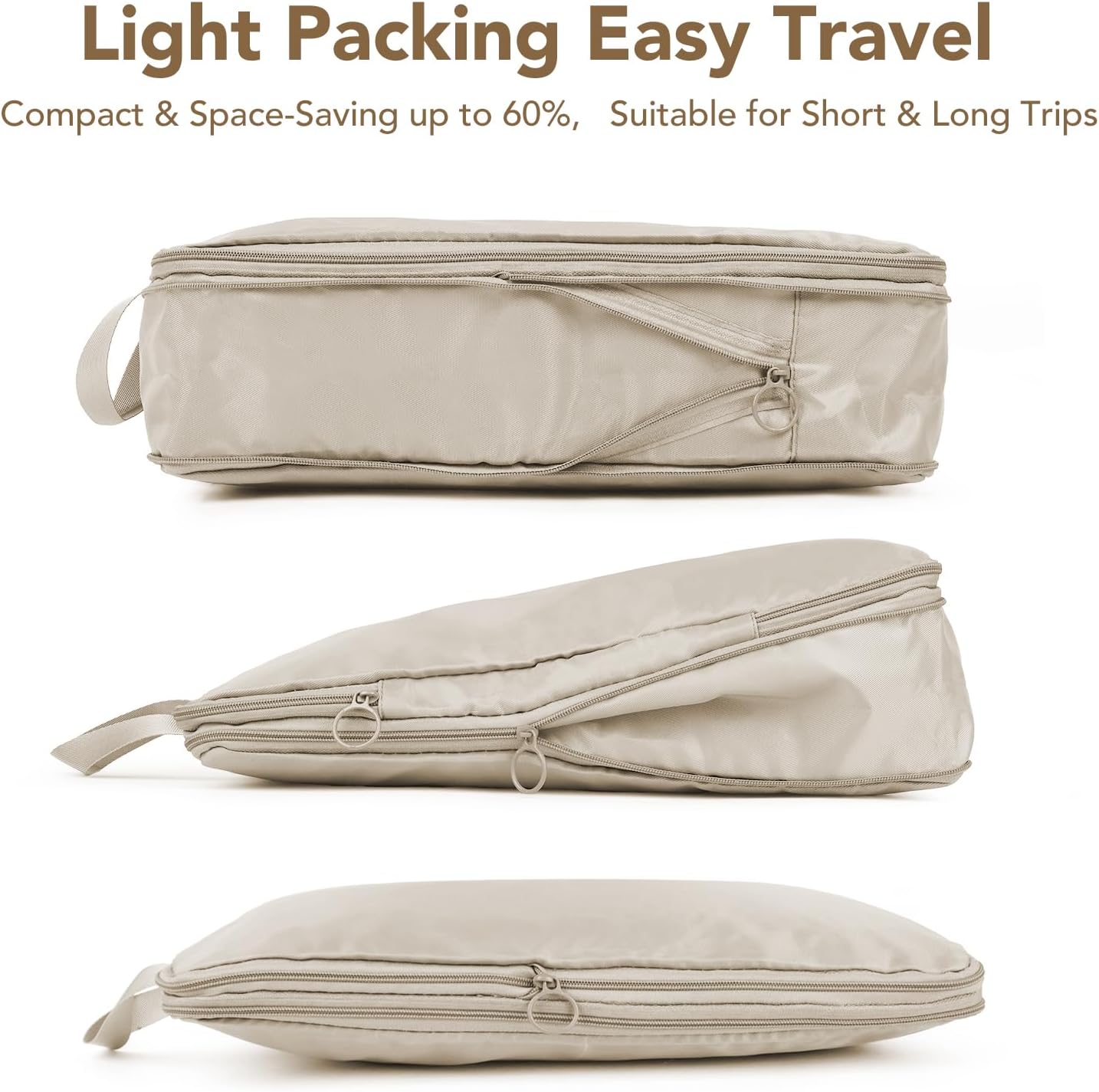 Compression Travel Cubes Set 4,Space-Saving & Stylish Minimalist Design Lightweight,Traval organizer bags for luggage,Packing Cubes for Travel(Beige)