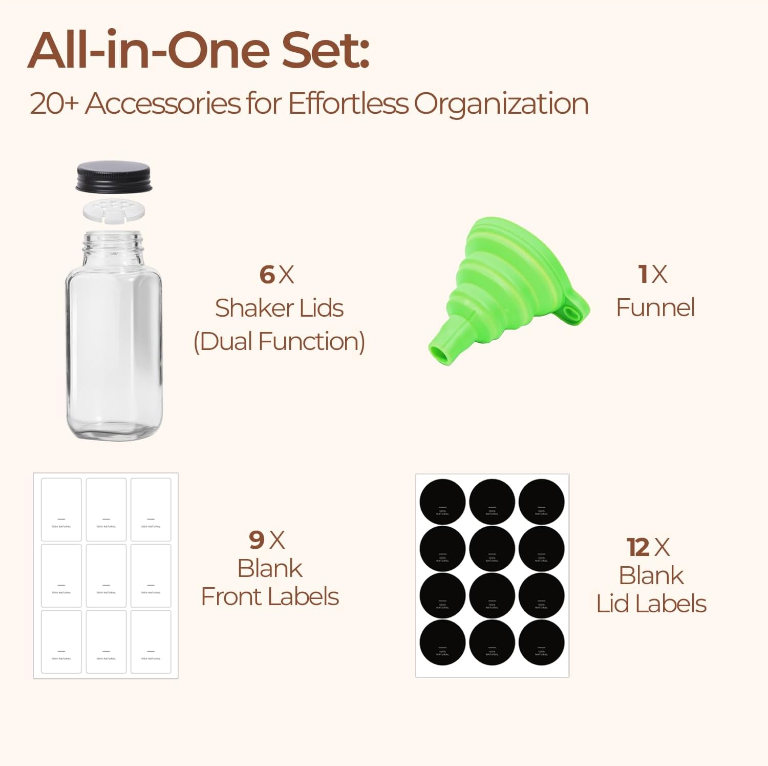 Space-Saving Design: Maximize your kitchen’s efficiency with our 6-piece set of 8 fl.oz spice jars. Designed to fit neatly on shelves and in drawers, transforming clutter into harmony.