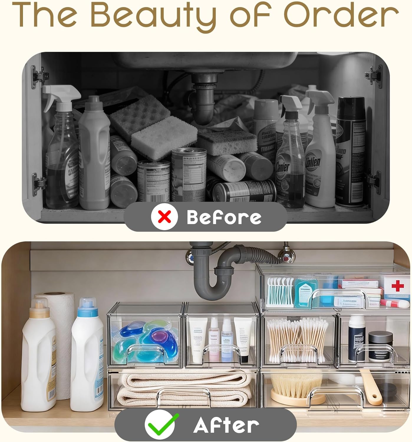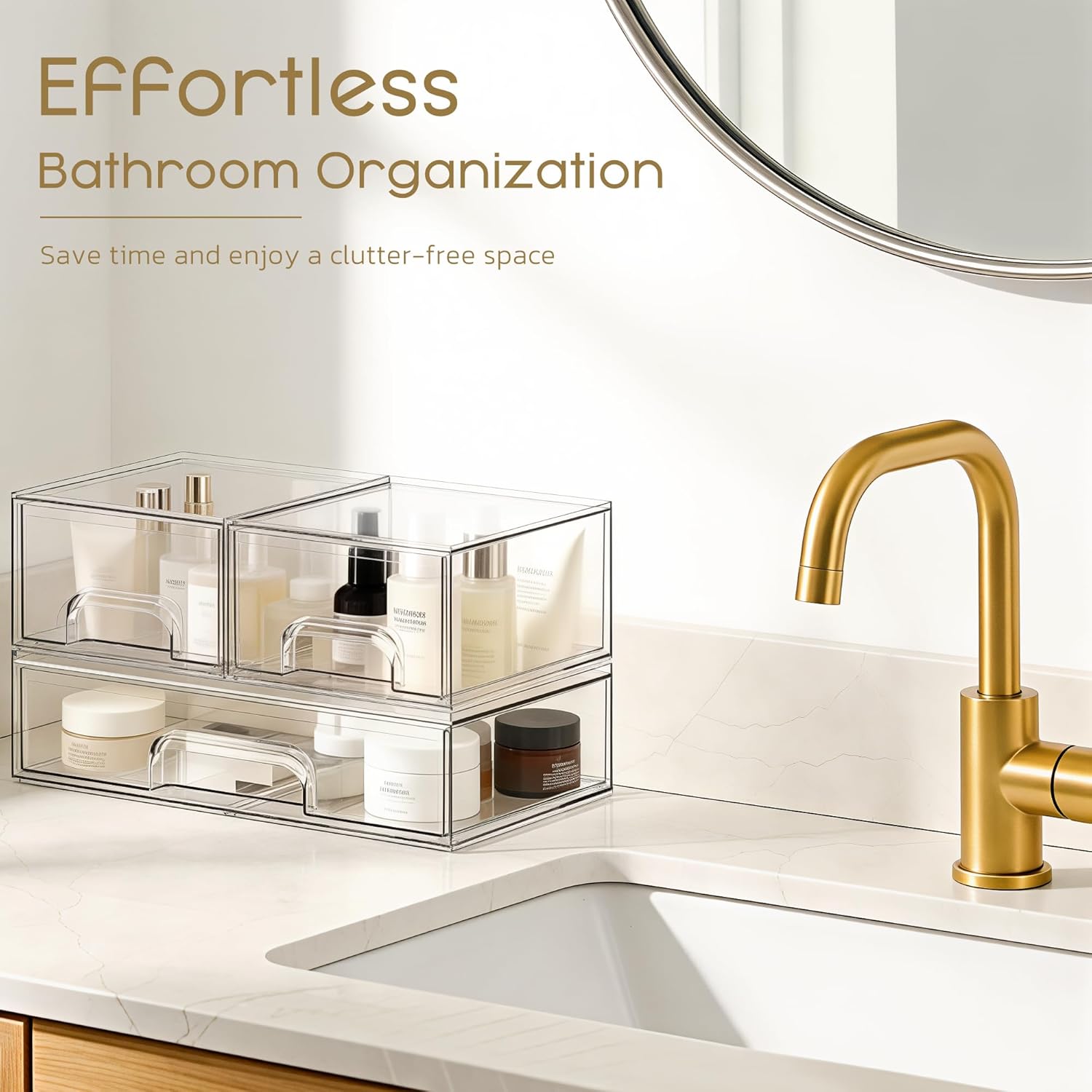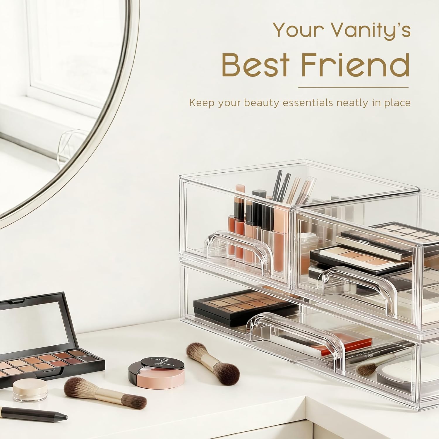 Stackable & Space-Saving Design: Reclaim your countertop and enjoy a clutter-free space. The secure, interlocking design lets you stack these acrylic storage drawers safely, keeping makeup, skincare, office supplies, or bathroom small essentials neatly organized while creating a calm, stress-free environment.