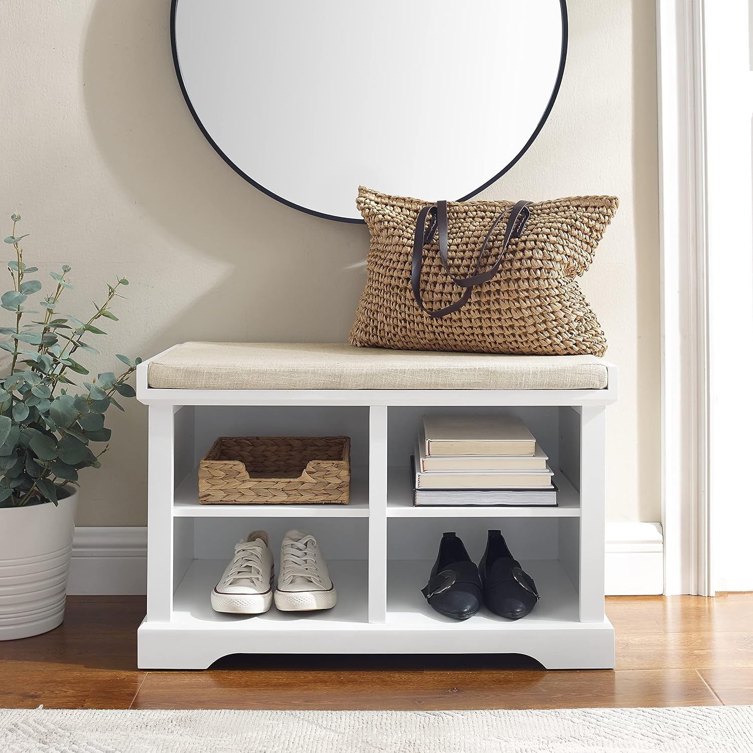 Crosley Furniture Anderson Entryway Storage Bench with Shoe Rack Organizer Shelves, White