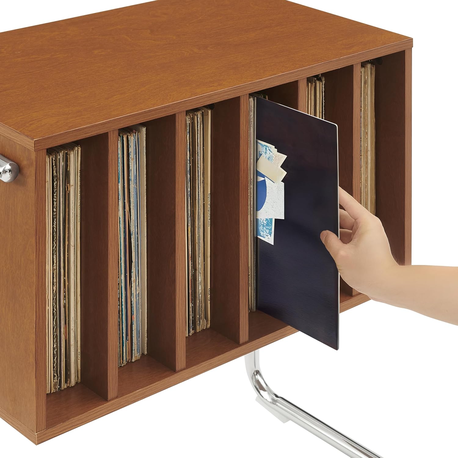VINYL STORAGE MADE SIMPLE: This compact stand holds up to 90 standard records between fixed vertical dividers. With a weight limit of 45 lbs, it’s ideal for collectors who want stylish storage without sacrificing space.