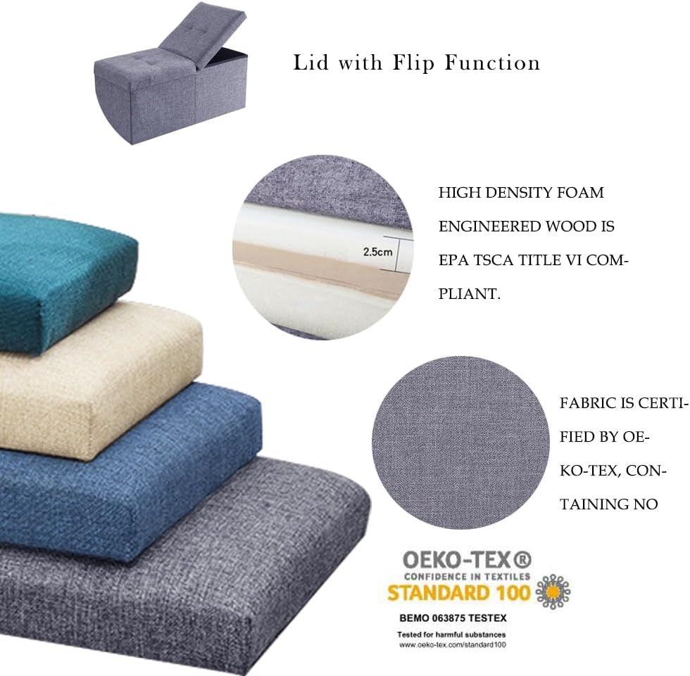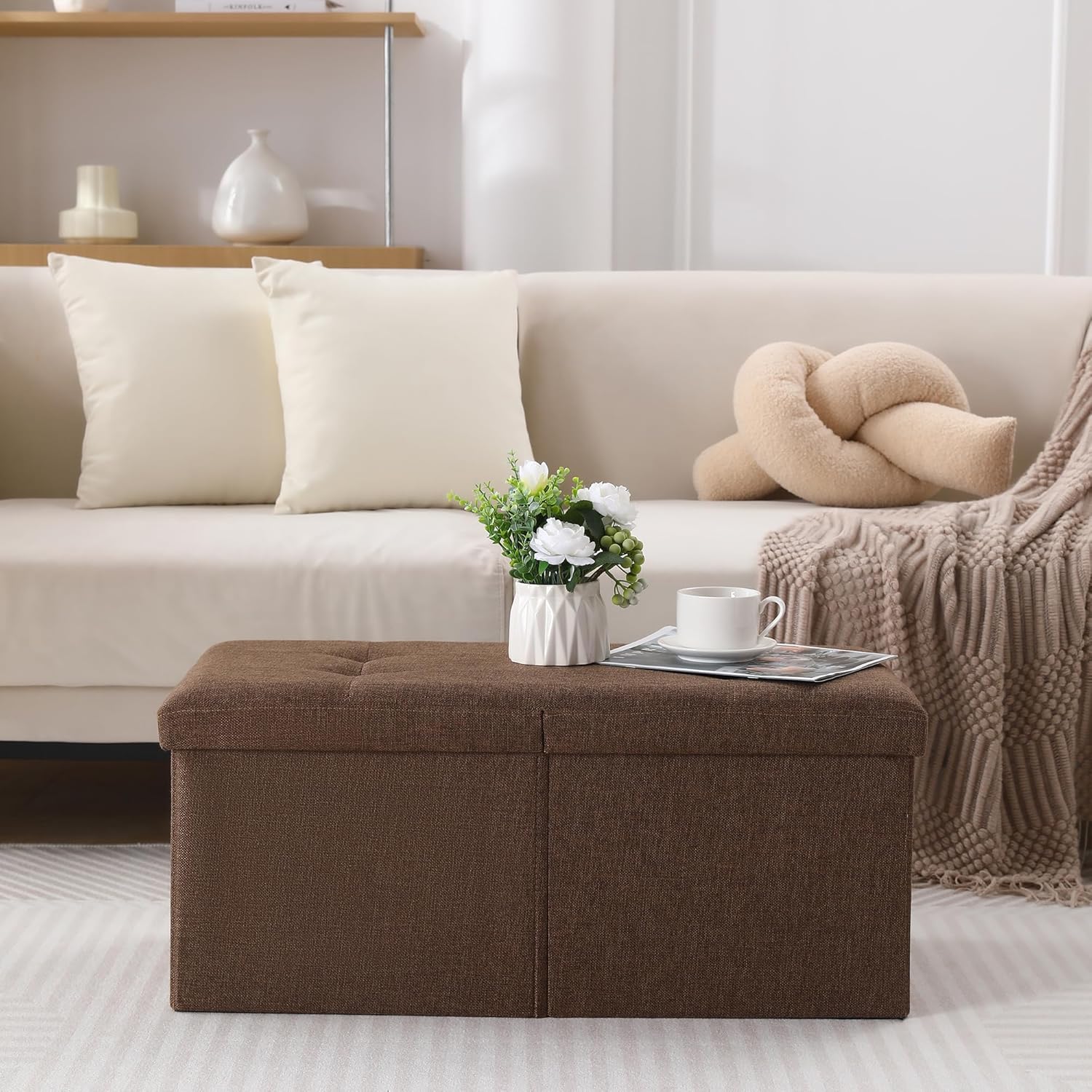 CUYOCA Storage Ottoman Bench Foldable Seat Footrest Shoe Bench End of Bed Storage with Flipping Lid, 75L Storage Space, 30 inches Linen Fabric Brown