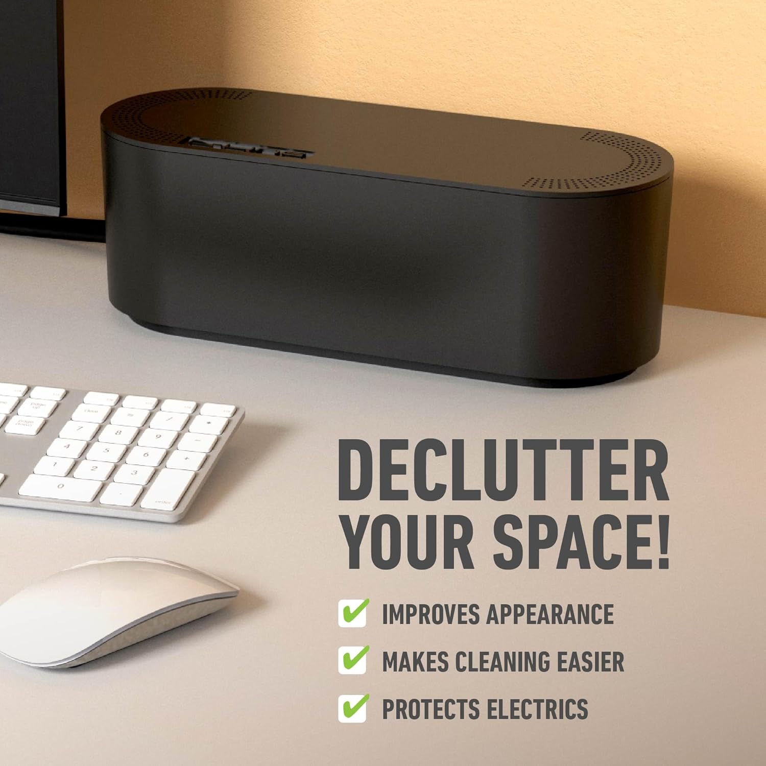 IMPROVE APPEARANCE! D-Line Cable Management Box contains popular sized power strips and excess cord clutter. By utilizing D-Line Cable Boxes wasted space is regained, with unsightly cables out of sight, your space will look neat & organized.